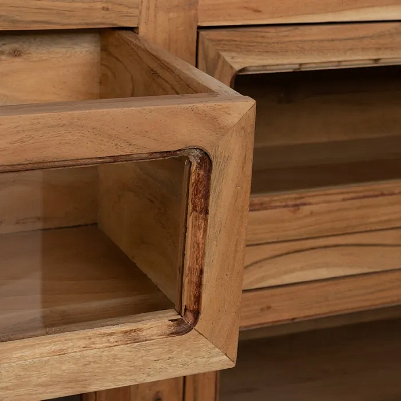 Bahut bois de manguier avec plateau marbre blanc et 6 tiroirs CYPRÉNA