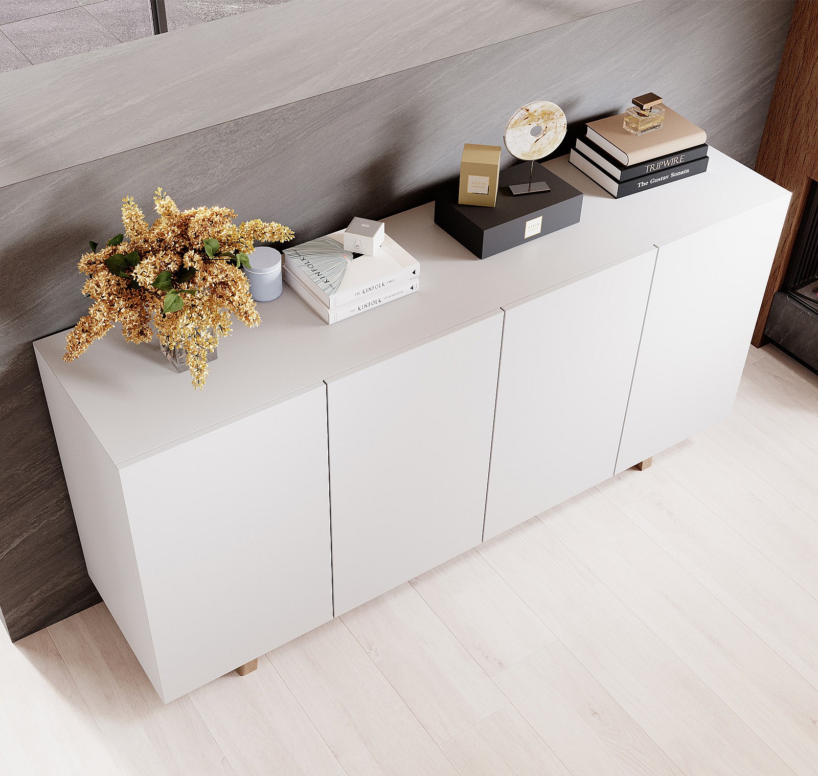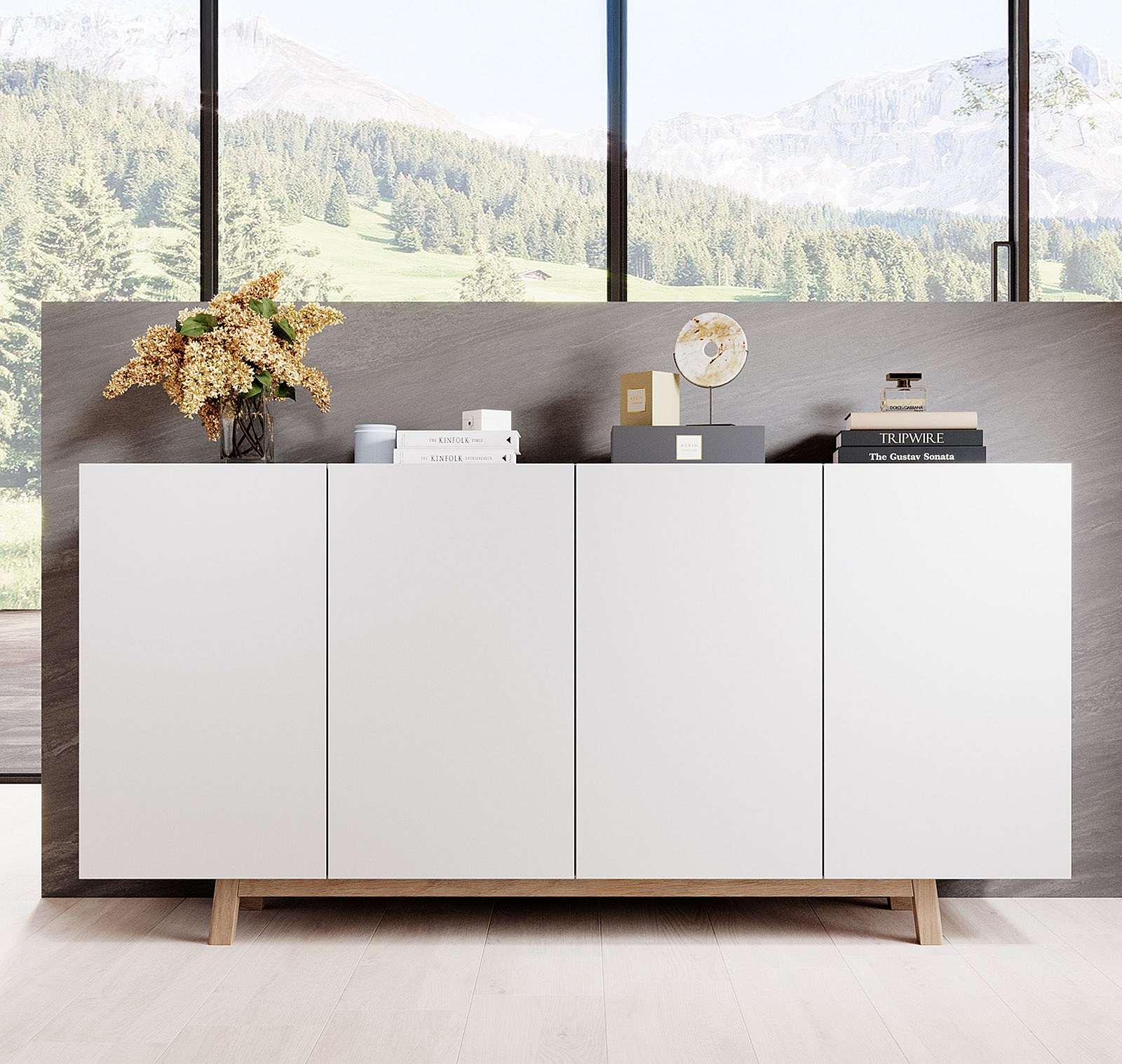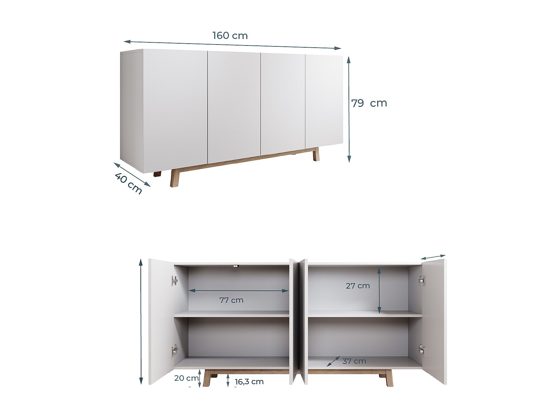 Bahut Buffet pour Salon Salle à manger en Blanc avec LED 160x40x79cm Siena