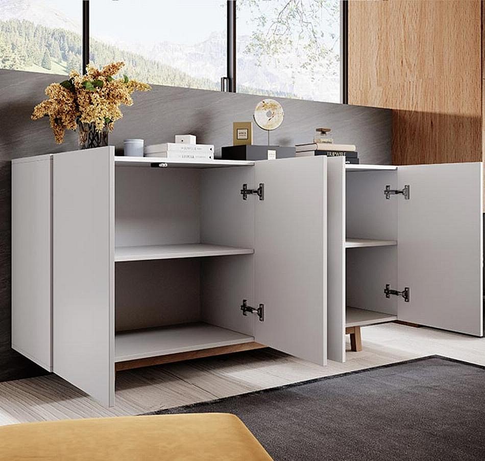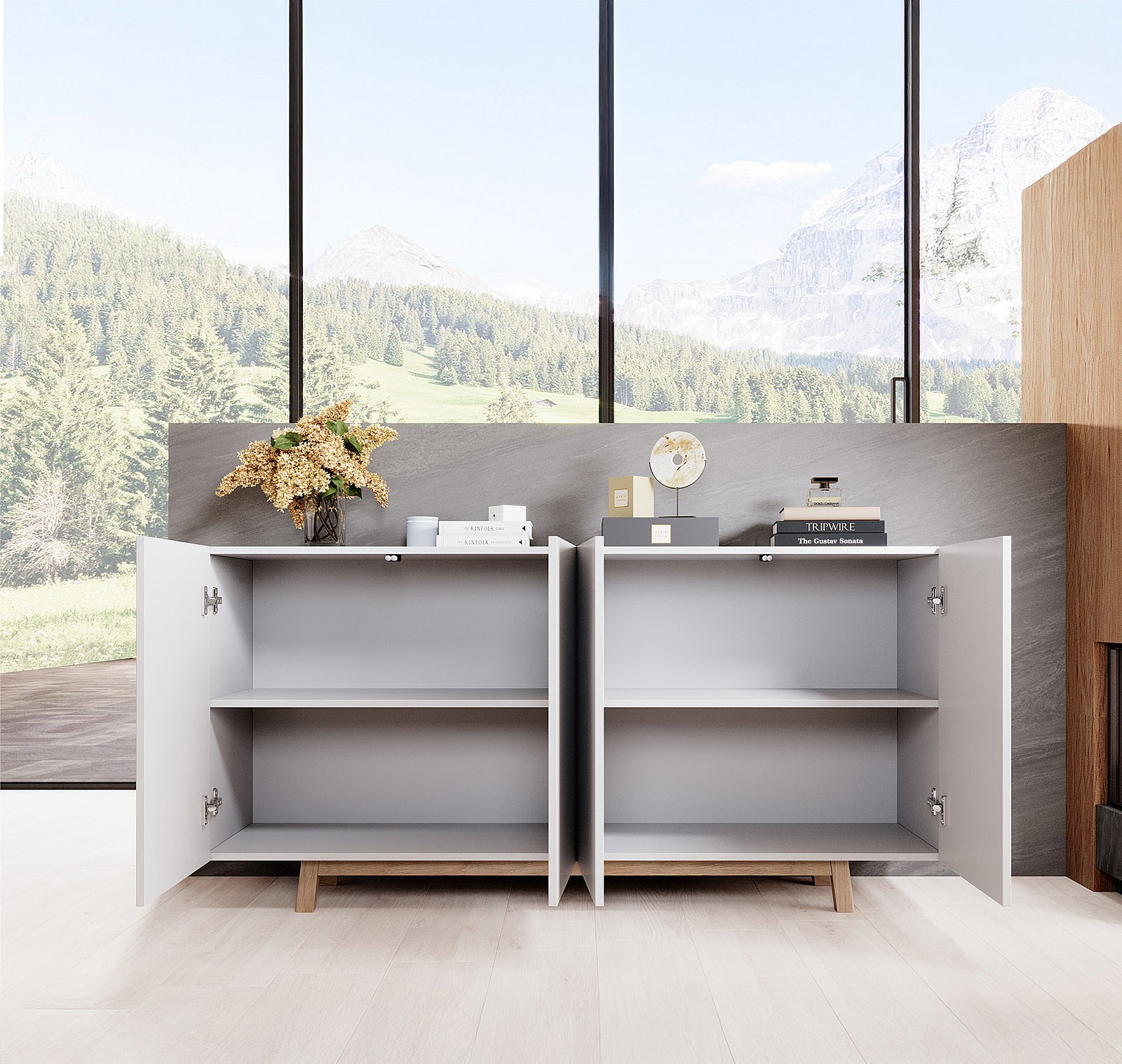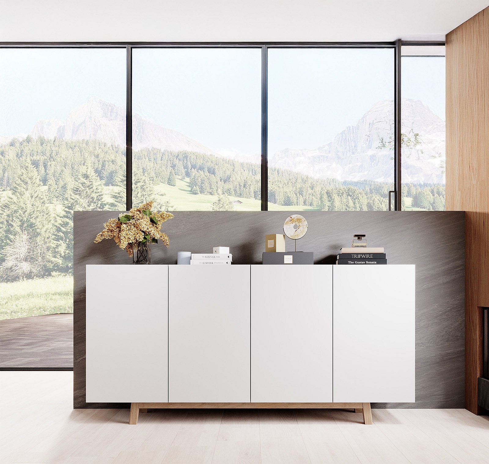 Bahut Buffet pour Salon Salle à manger en Blanc avec LED 160x40x79cm Siena