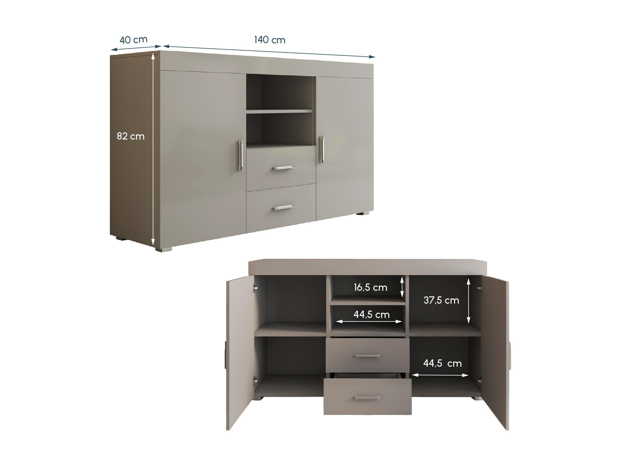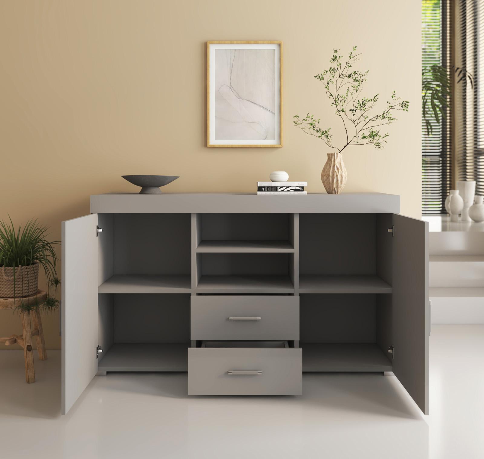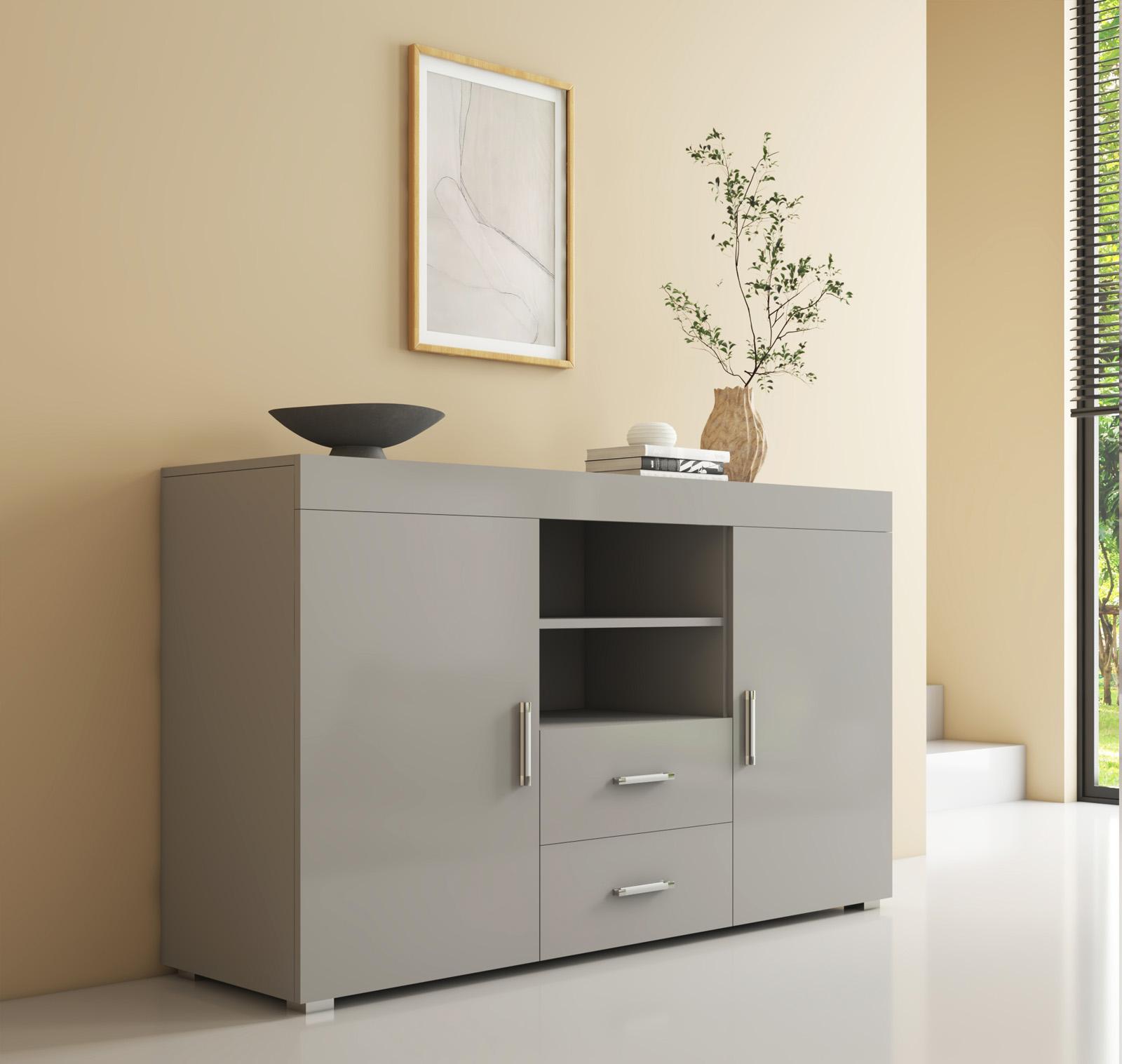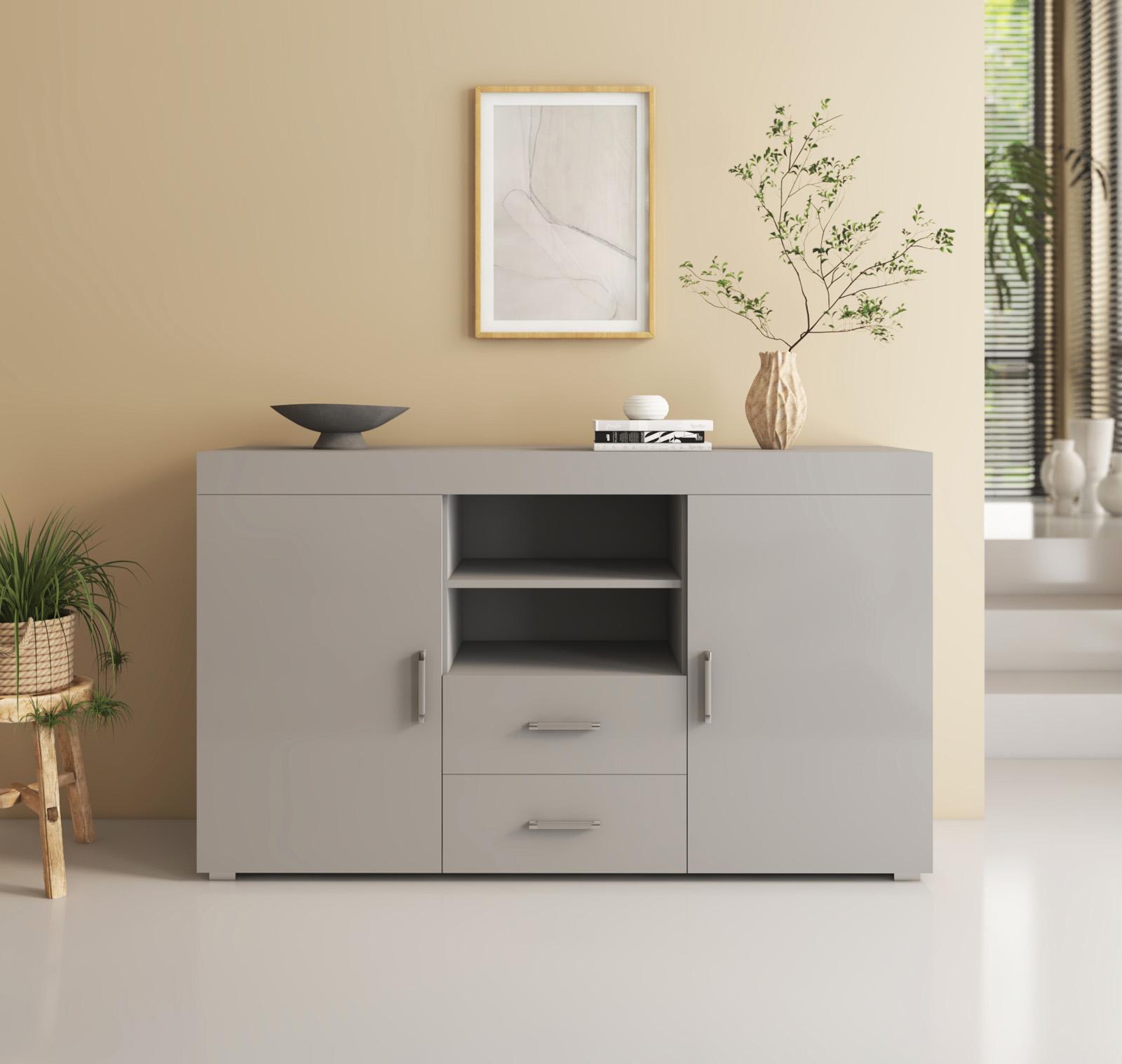 Bahut Buffet pour Salon Salle à manger en Gris 140x40x80cm Roque