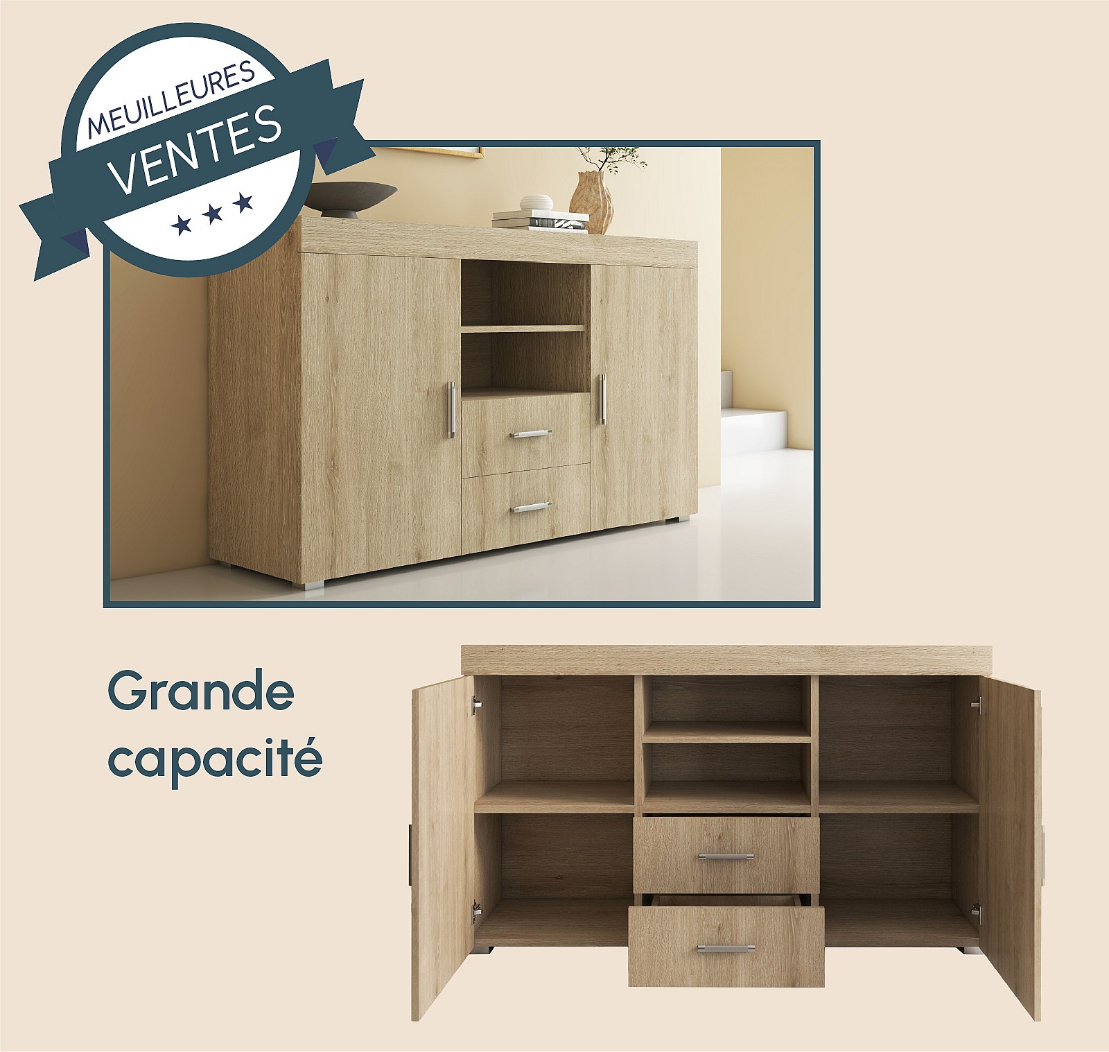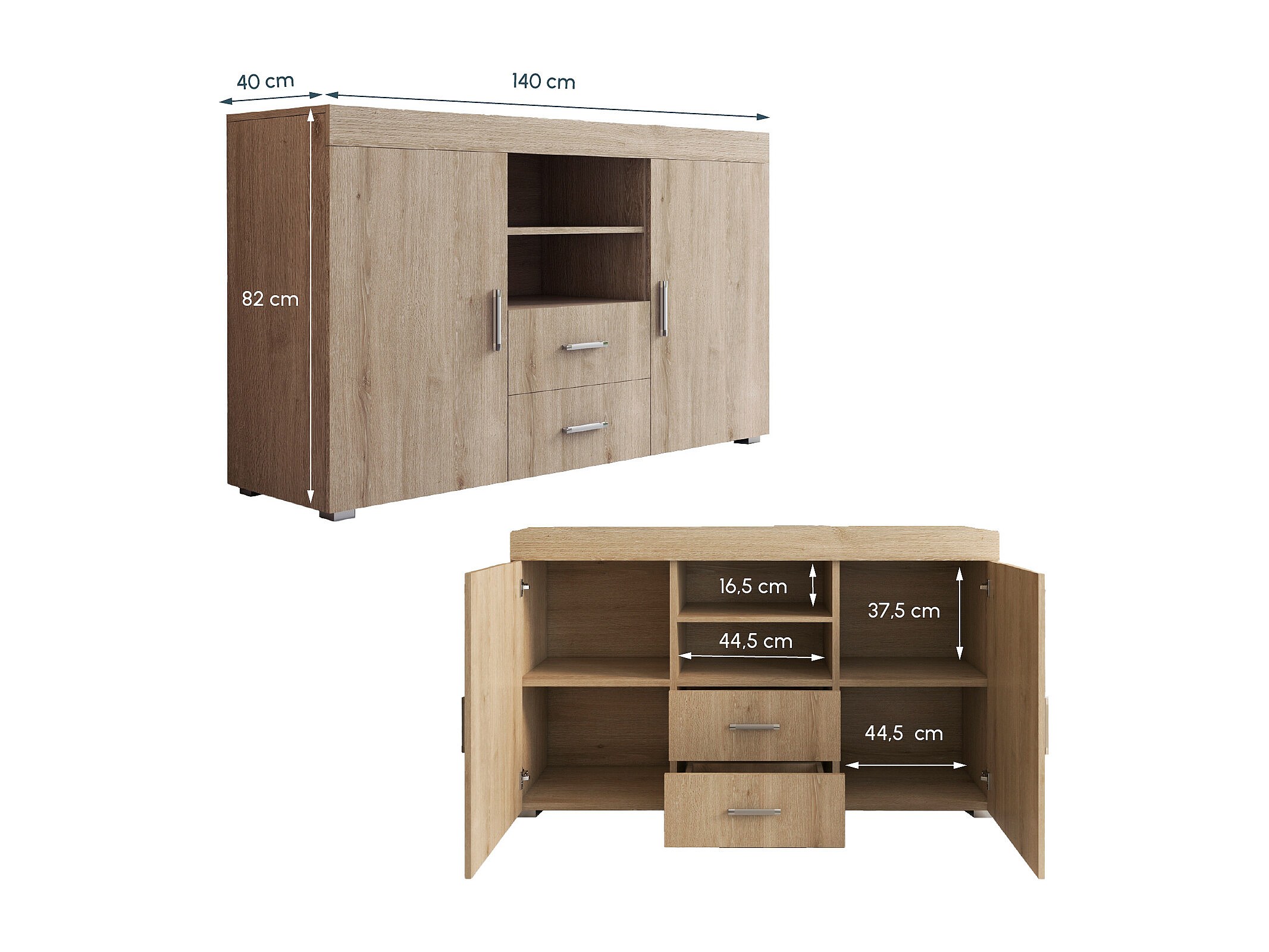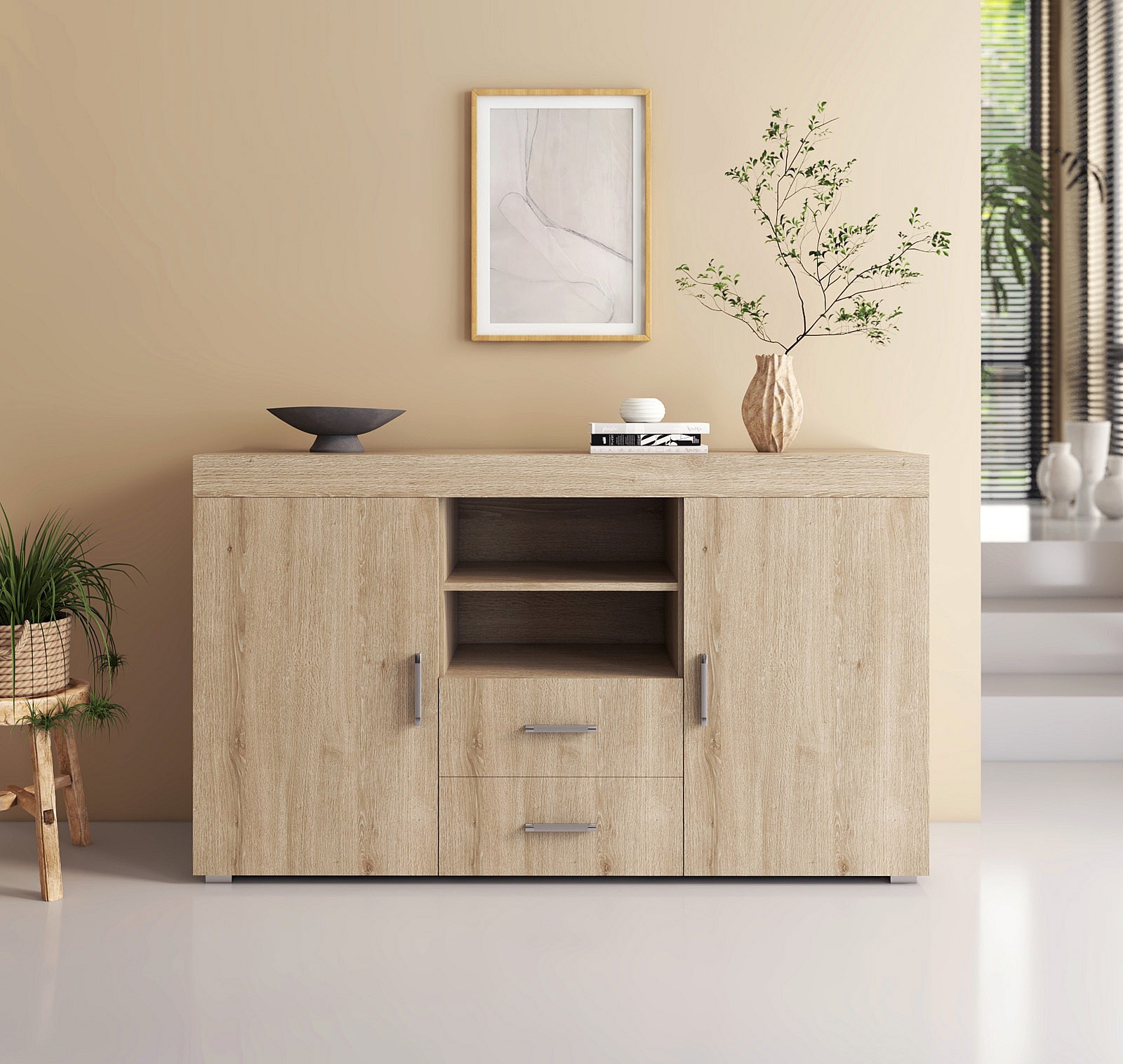 Bahut Buffet pour Salon Salle à manger en Sonoma 140x40x80cm Roque