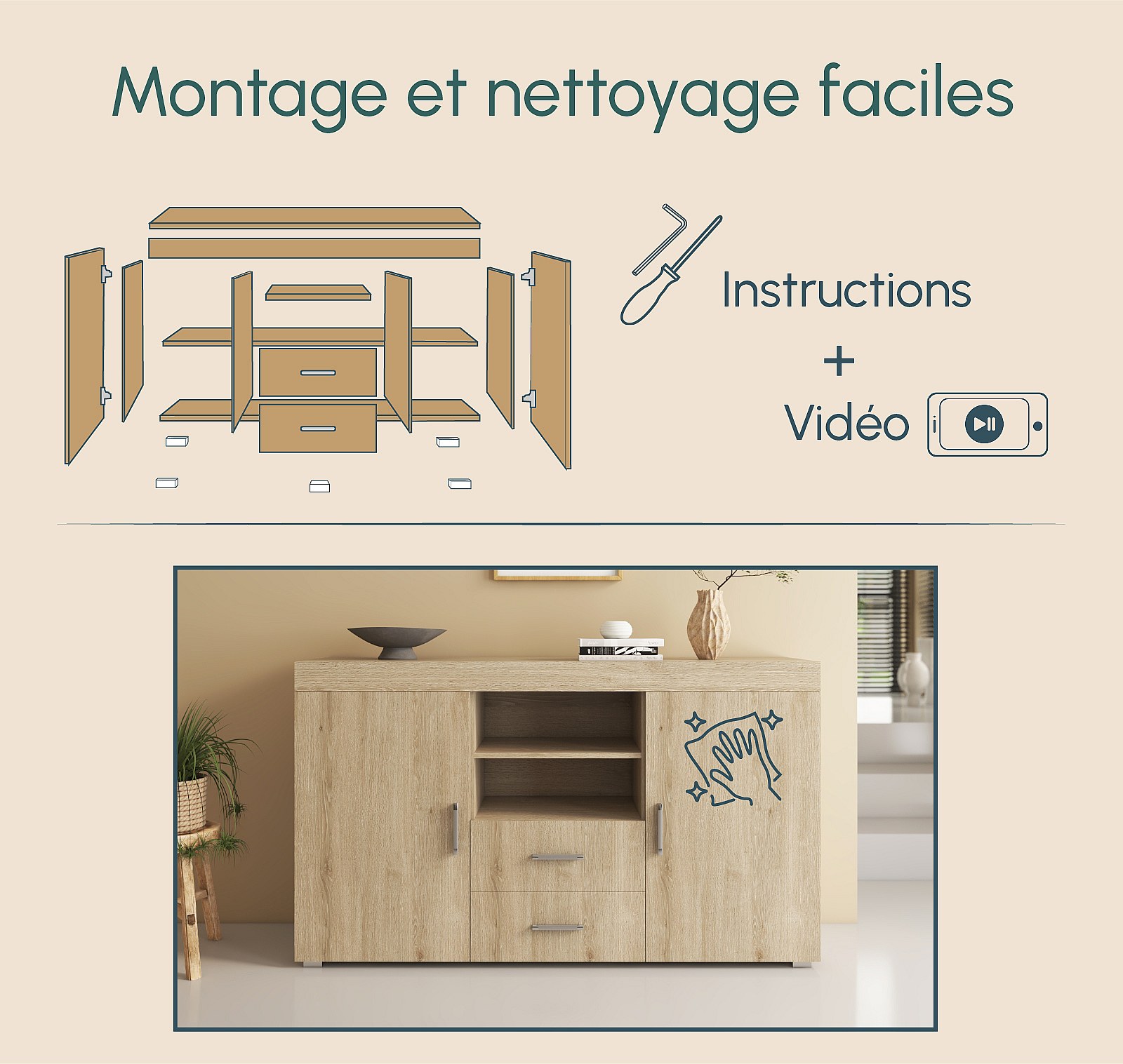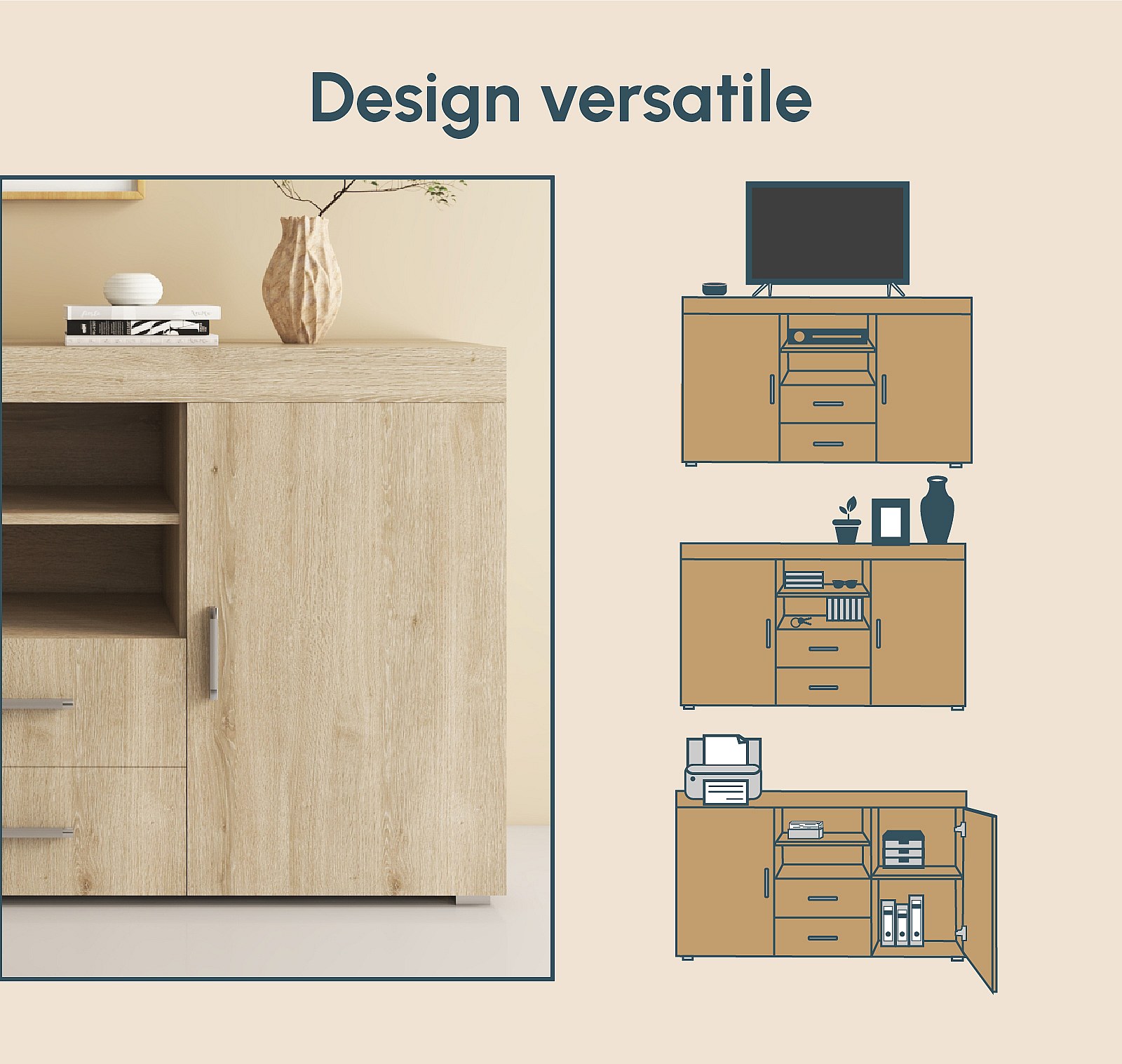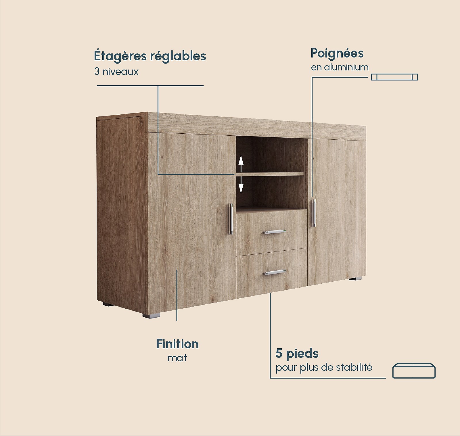 Bahut Buffet pour Salon Salle à manger en Sonoma 140x40x80cm Roque