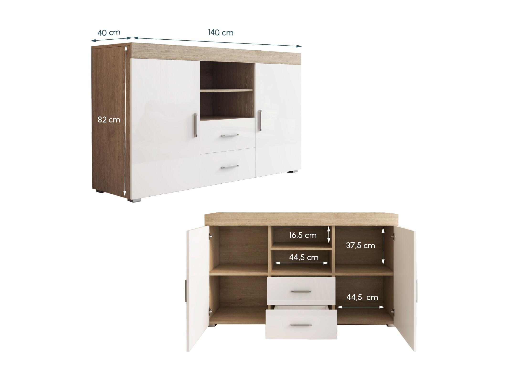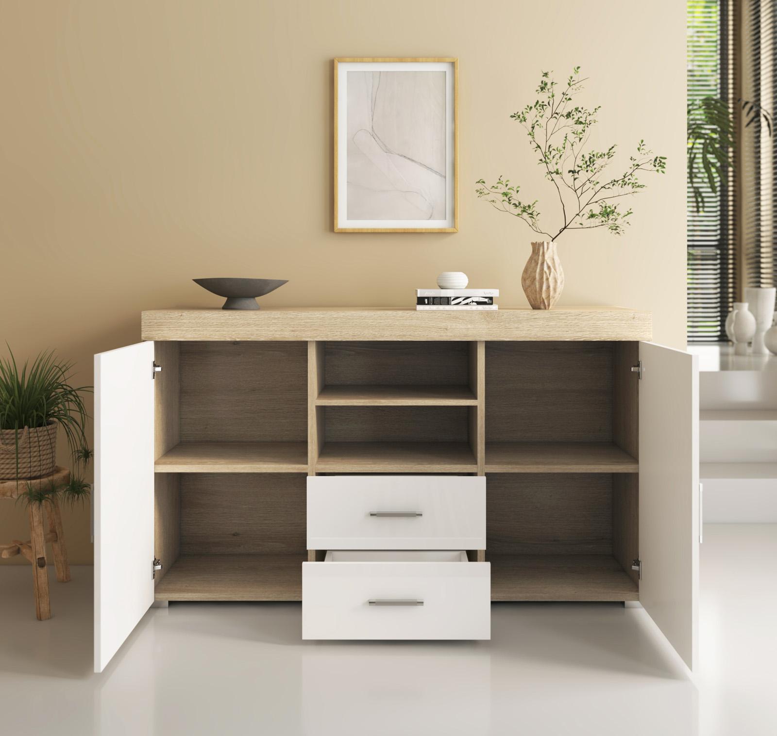Bahut Buffet pour Salon Salle à manger en Sonoma et Blanc 140x40x80cm Roque