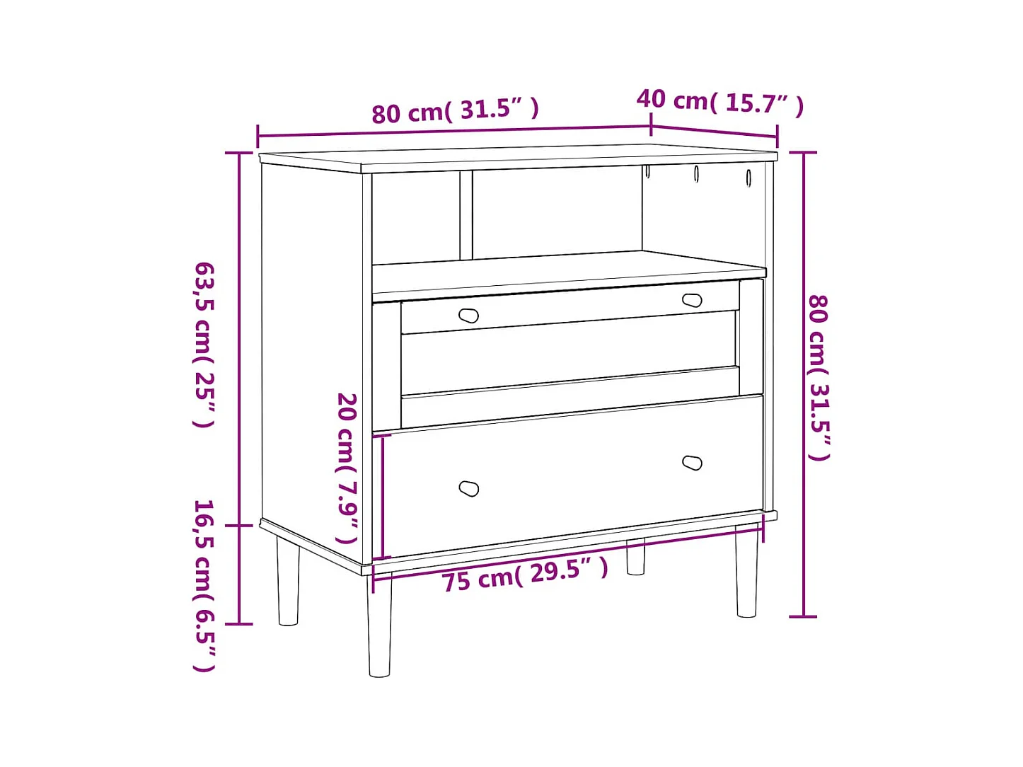 Buffet SENJA aspect rotin marron 80x40x80 cm bois massif de pin