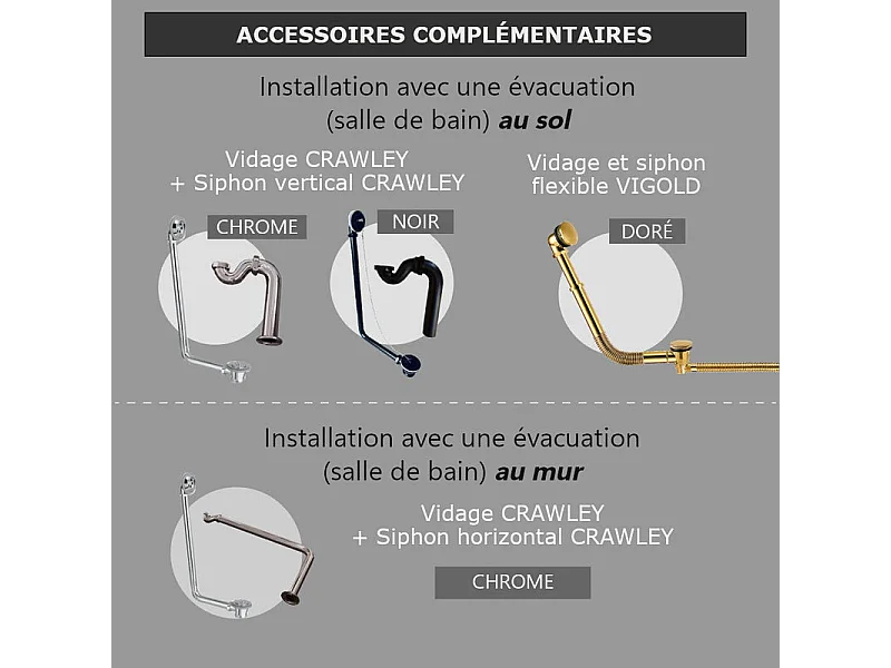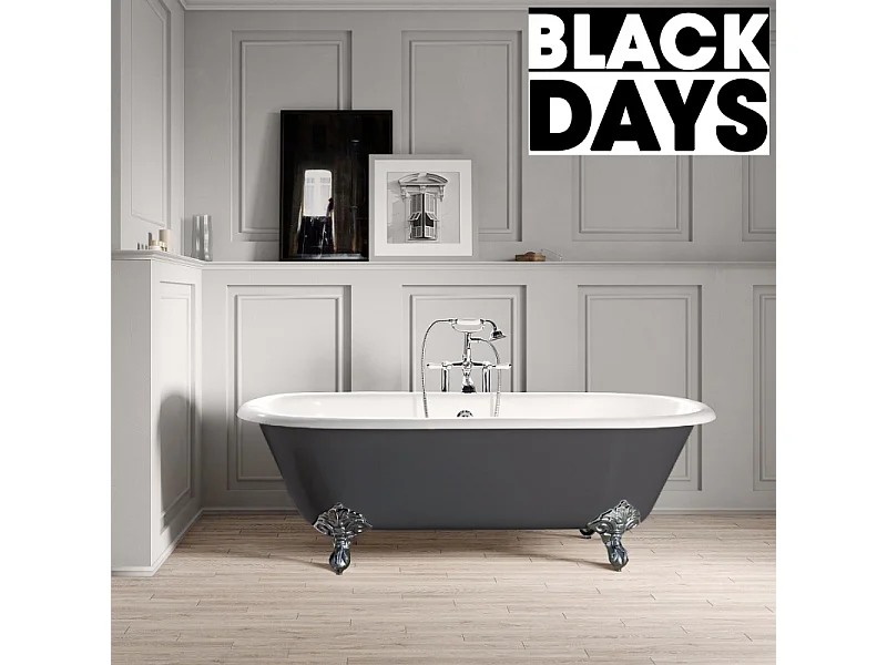 Baignoire sur pieds en fonte PLYMOUTH Grise 190 cm Pieds chromés