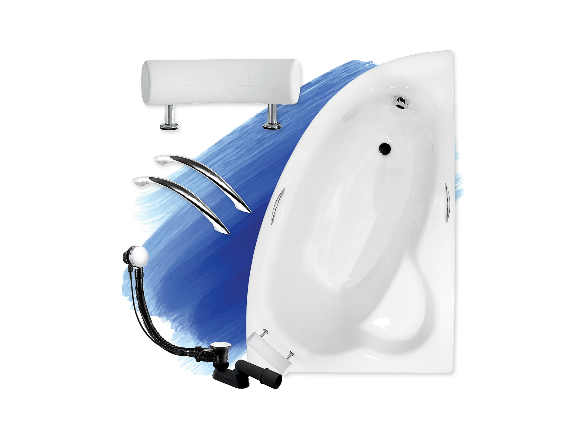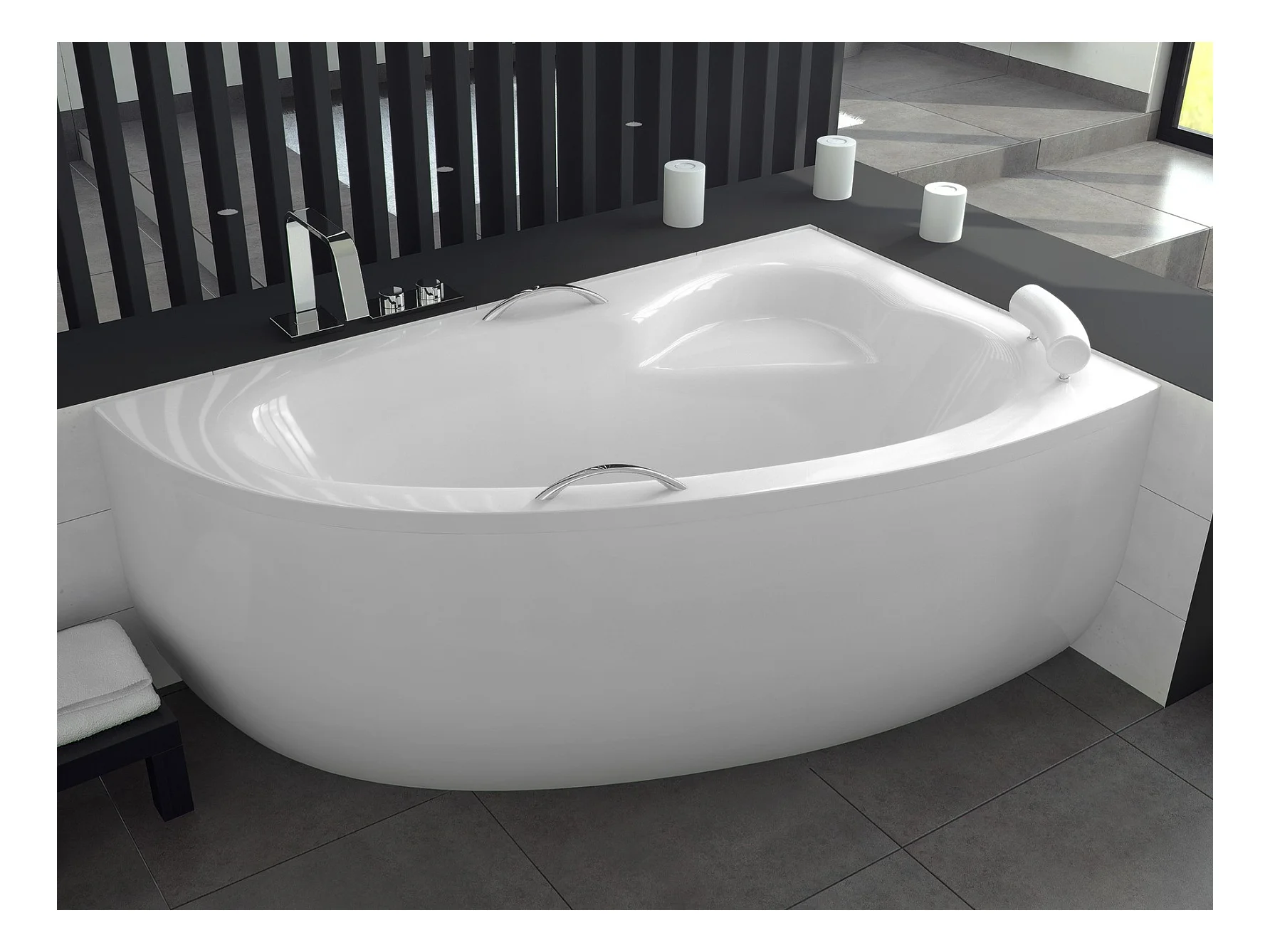 Baignoire asymétrique 150x100 Droite NATALIA PREMIUM acrylique blanc, sans Habillage + Poignées + Repose Tête + Pieds + Vidage à chromé