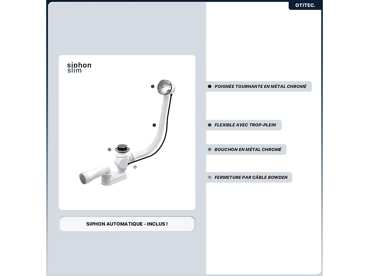 Baignoire asymétrique - 160 x 75 cm - Droite - avec Tablier Blanc - Pieds - Vidage Chrome - AVITA