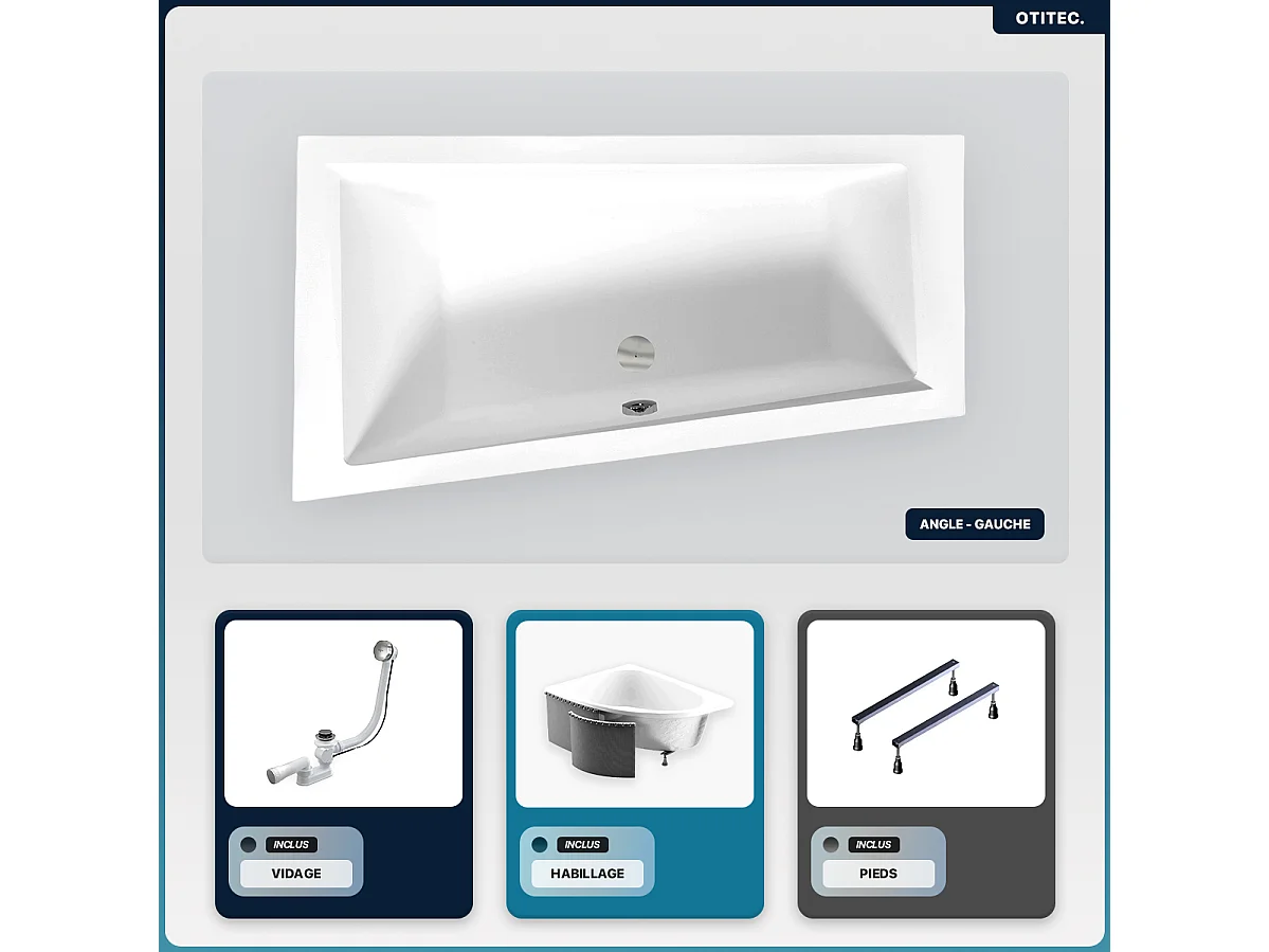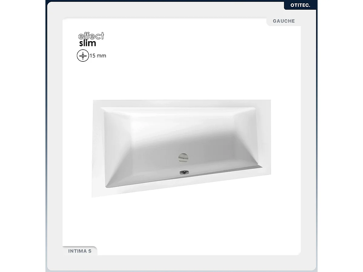 Baignoire asymétrique - 160 x 90 cm - Gauche - avec Habillage - Pieds - Vidage Chrome - INTIMA SLIM