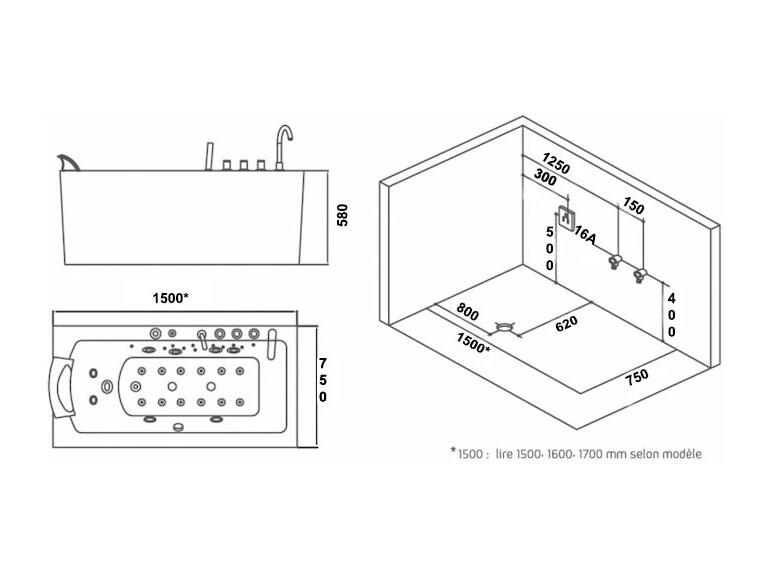 Baignoire balneo HAMILTON 160 droite ARCHIPEL® 160x75