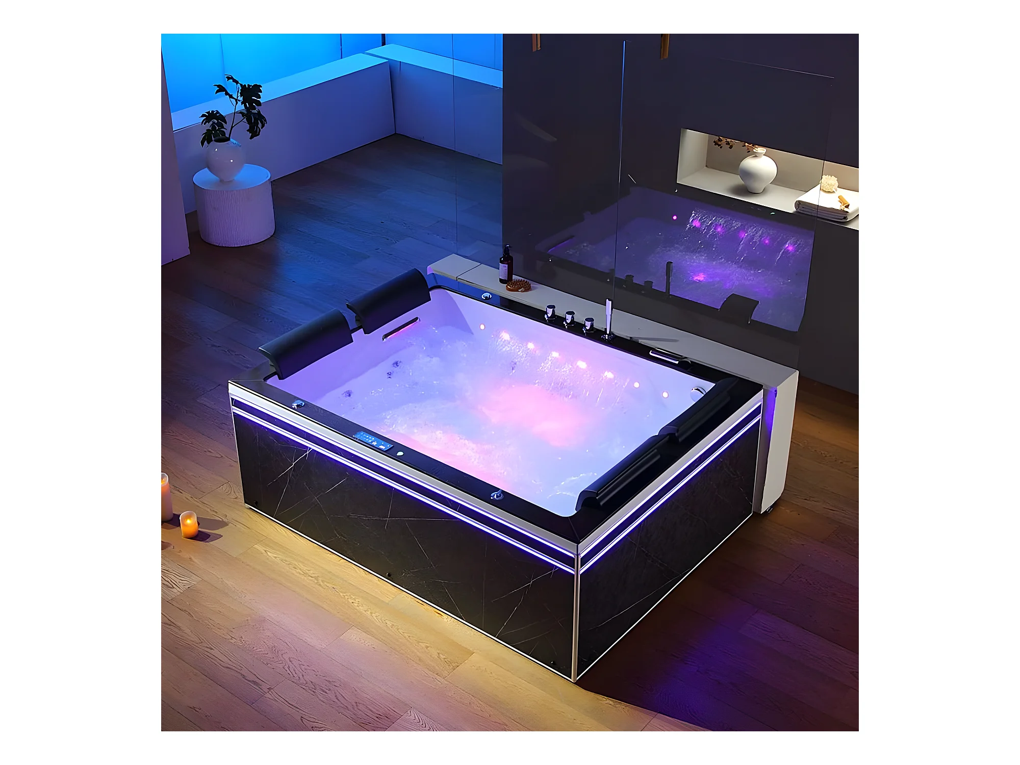 Baignoire balnéo MARINA BLACK 2 places ARCHIPEL® 181x151 - GAUCHE