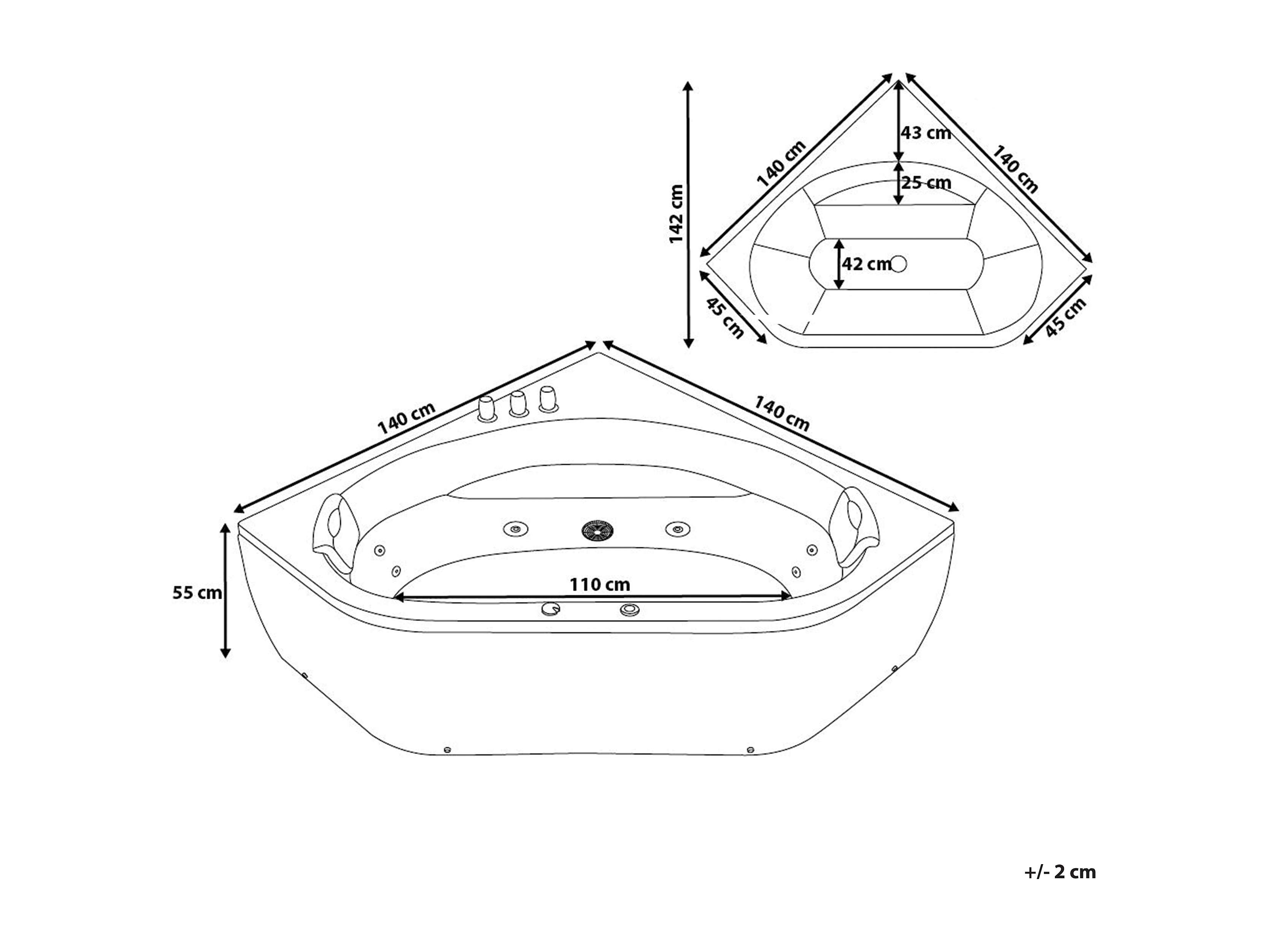 Baignoire d'angle à remous avec LED MEVES 140 x 140 cm Blanc