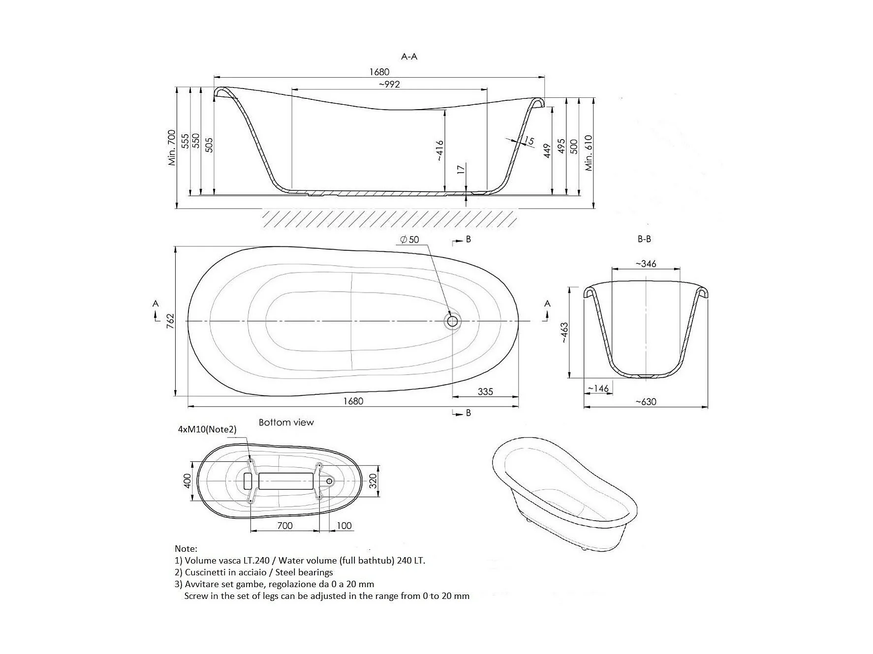 Baignoire Îlot Style Classique Sur Pieds Argentés | Romantica