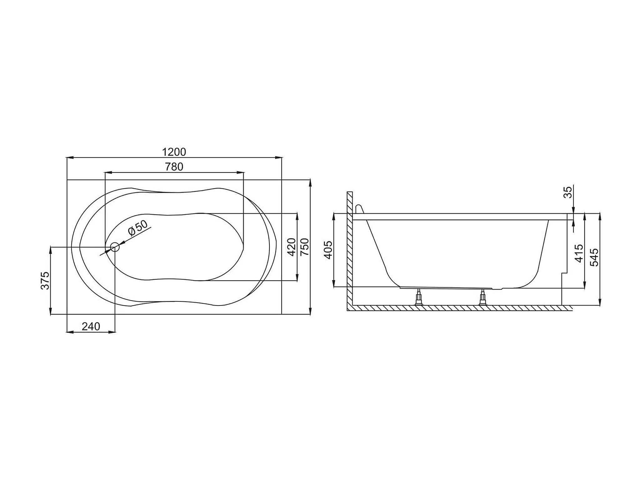 Baignoire rectangulaire 120x75 GRACJA acrylique blanc + Habillage en polystyrène + Pieds + Vidage à chromé
