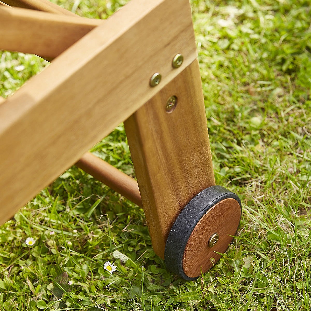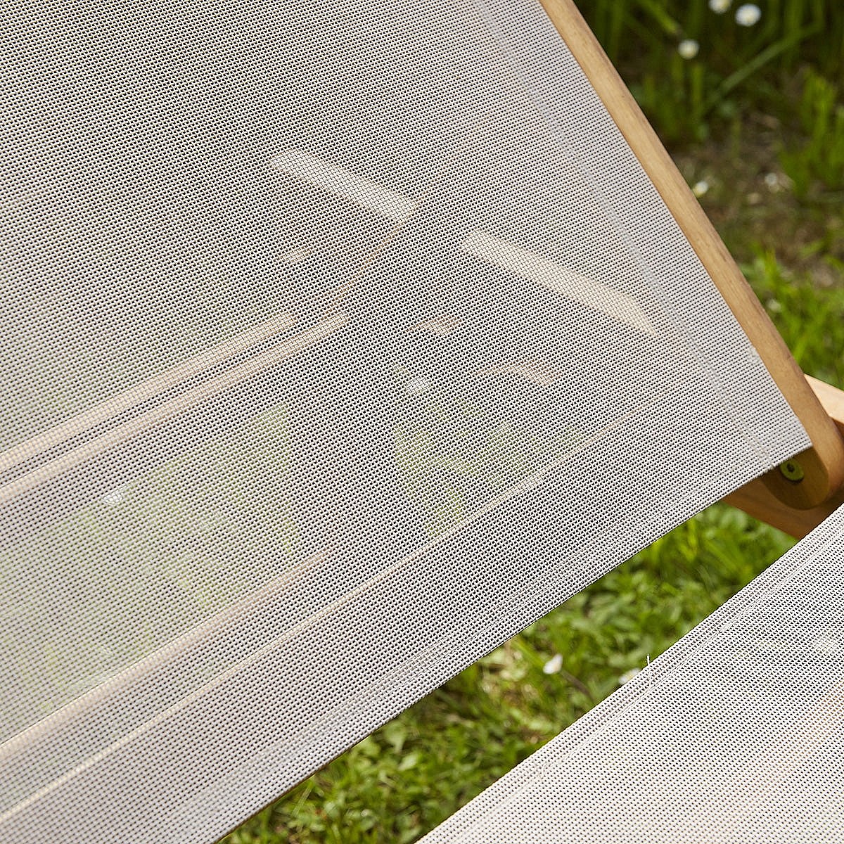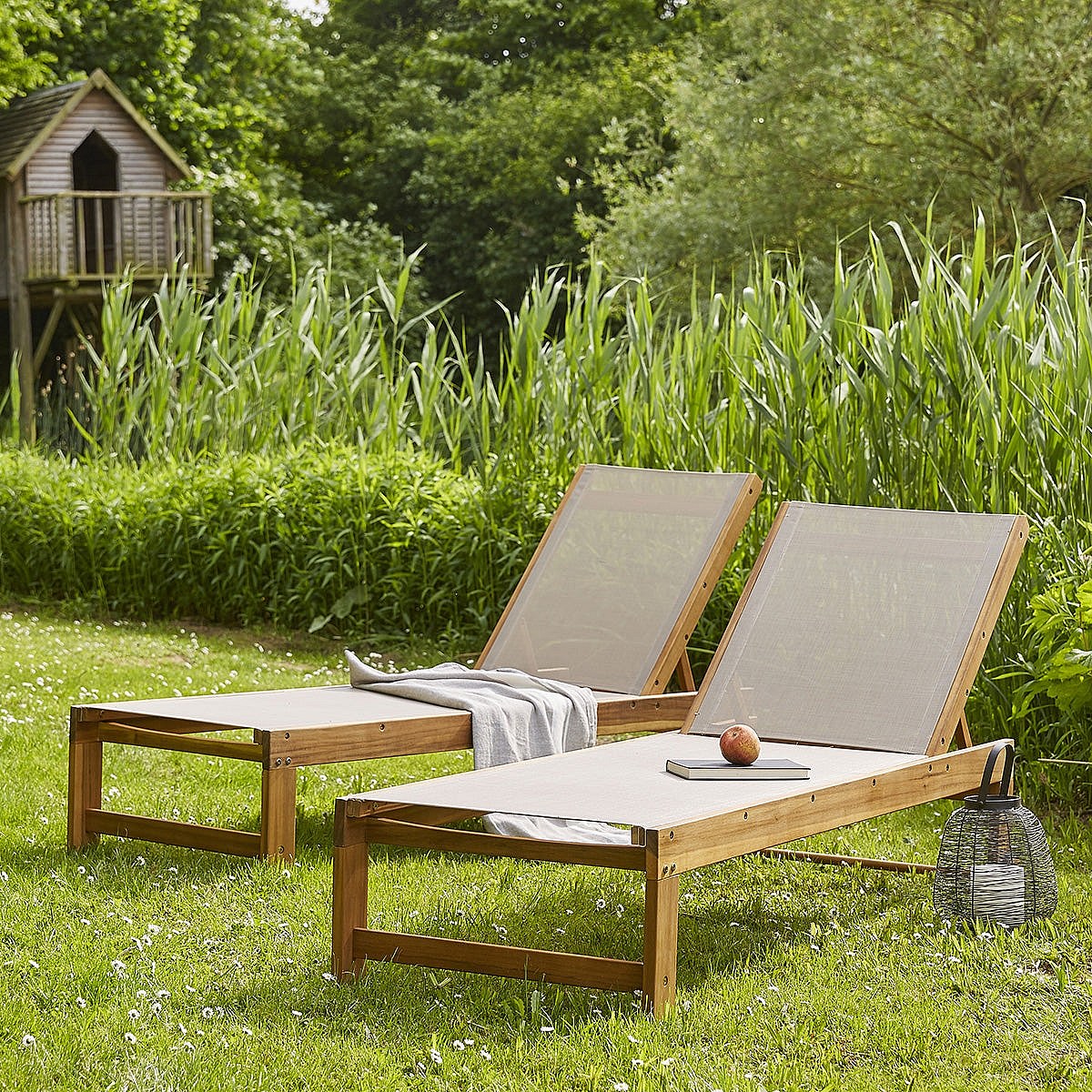 Bain de soleil en acacia massif et textilène gris