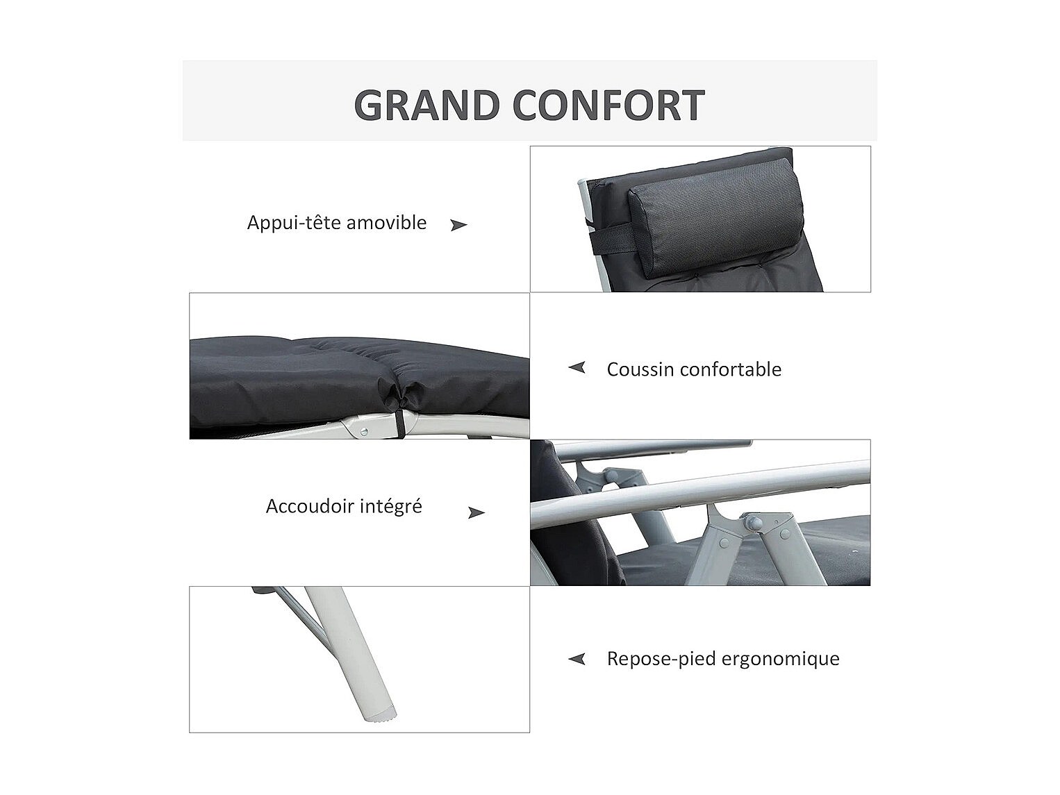 Bain de soleil avec oreiller Textilène Noir SEF26435