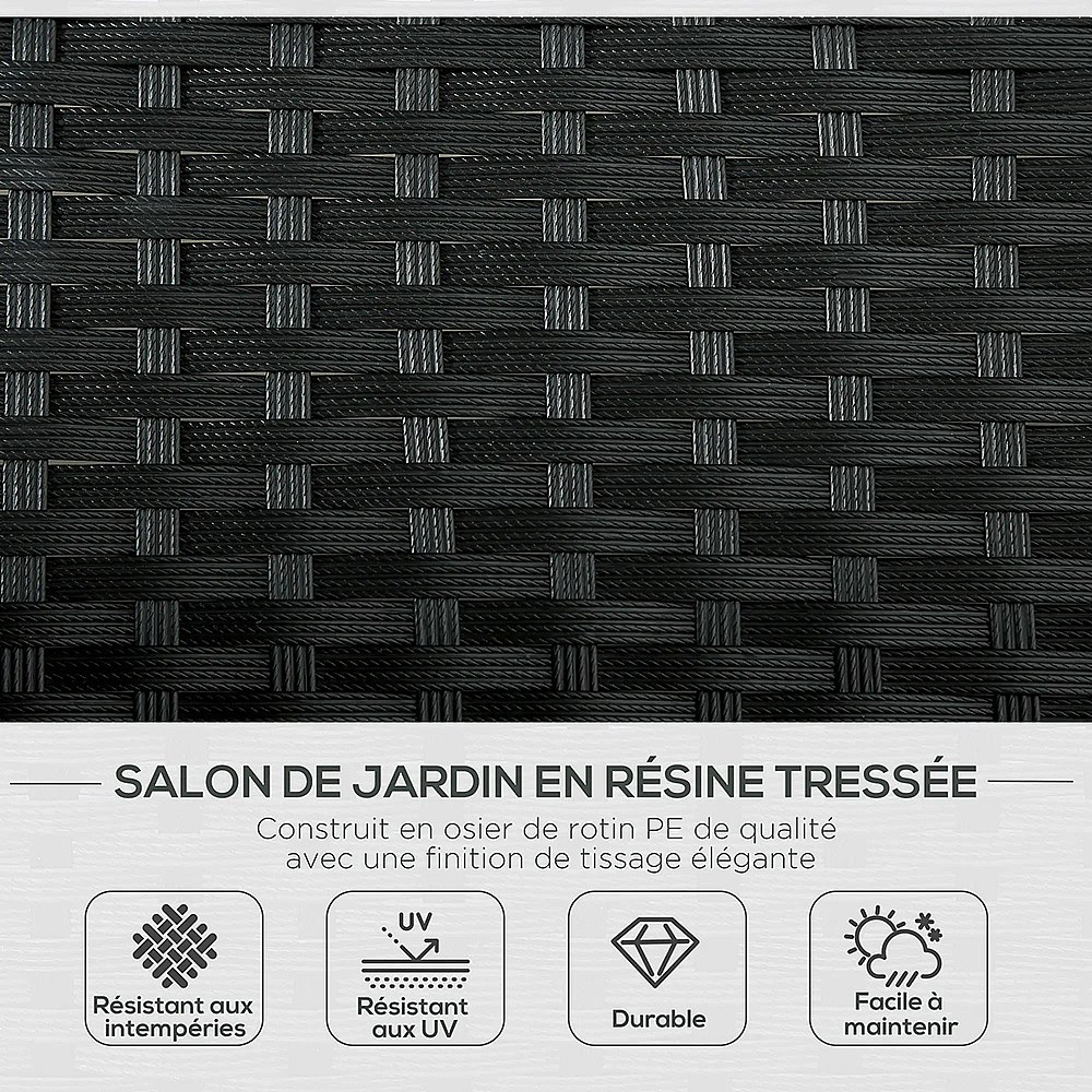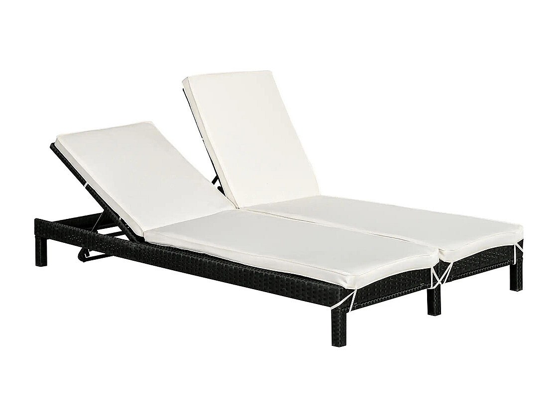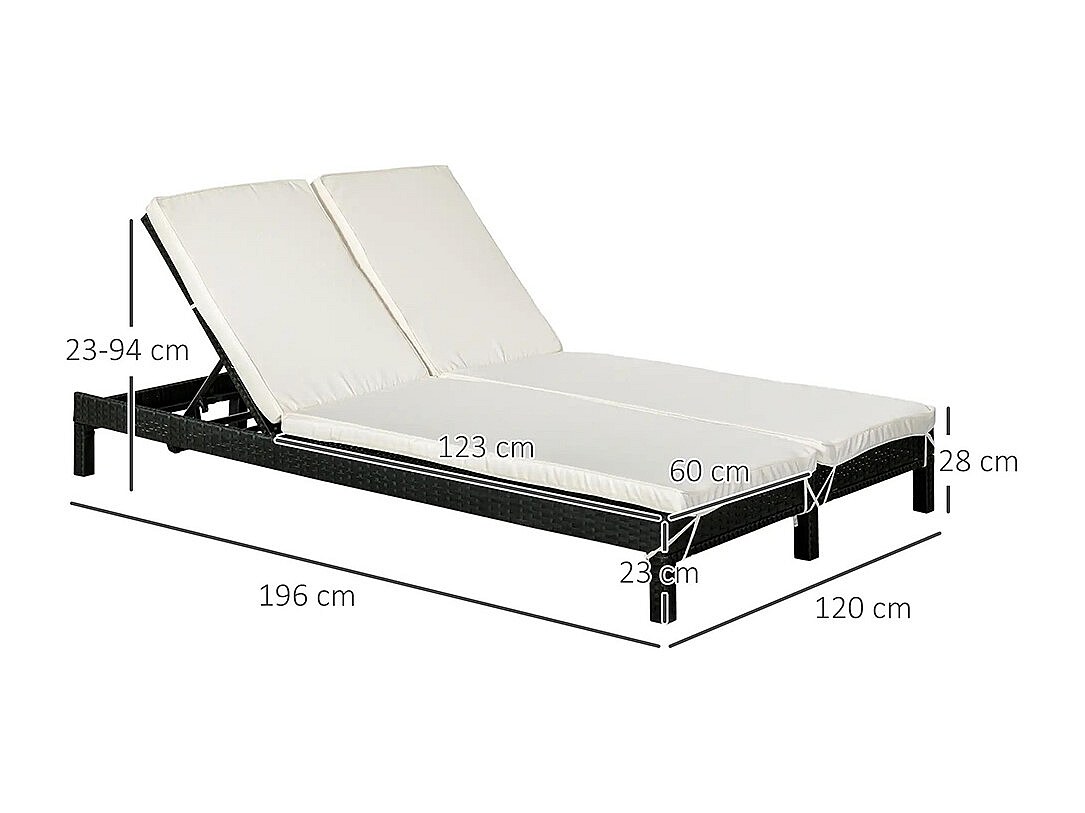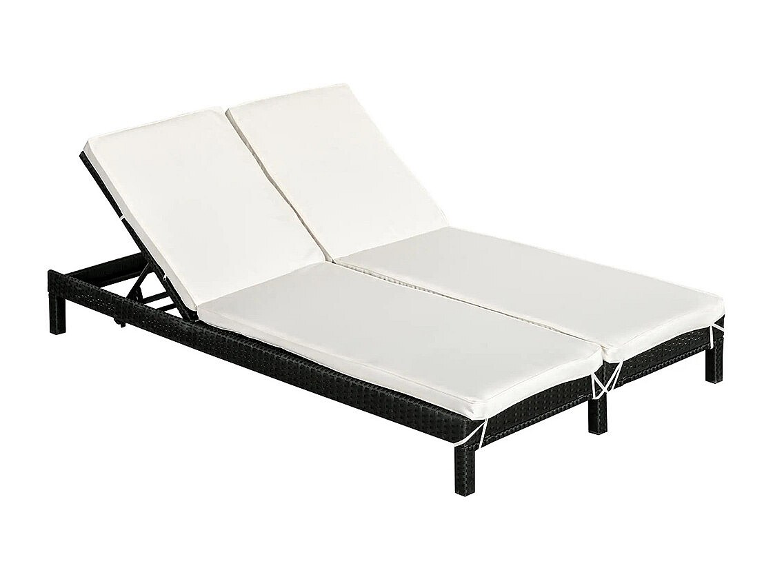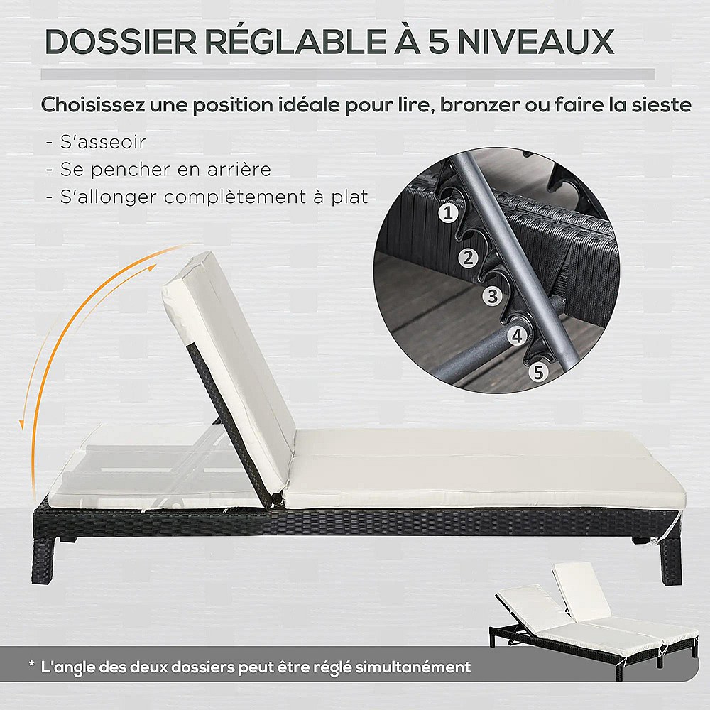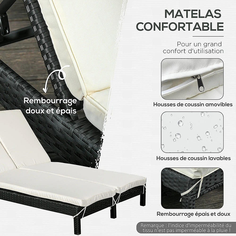 Bain de soleil transat 2 places - grand confort - dossier inclinable multi-positions - matelas fournis crème - résine tressée 4 fils noir