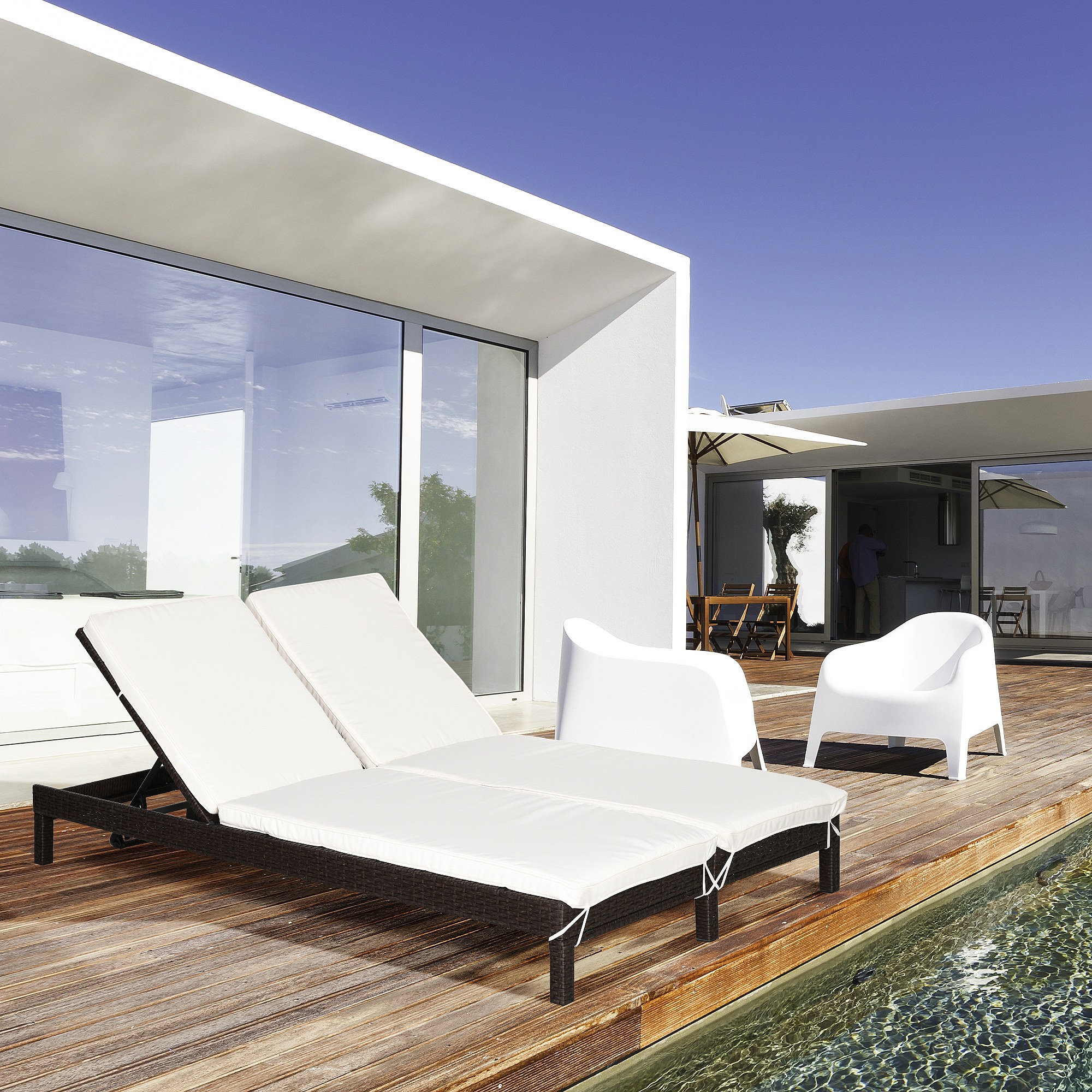 Bain de soleil transat 2 places - grand confort - dossier inclinable multi-positions - matelas fournis - résine tressée chocolat