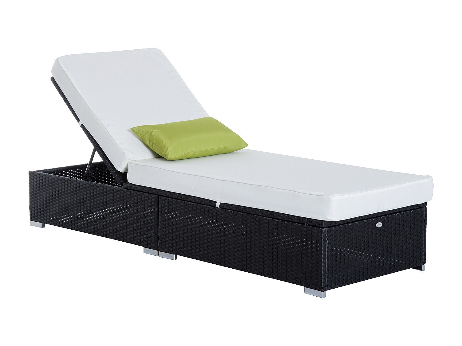 Bain de soleil transat grand confort 195L x 68l x 31H cm dossier inclinable multi-positions matelas épaisseur 10 cm crème résine tressée 4 fils noir