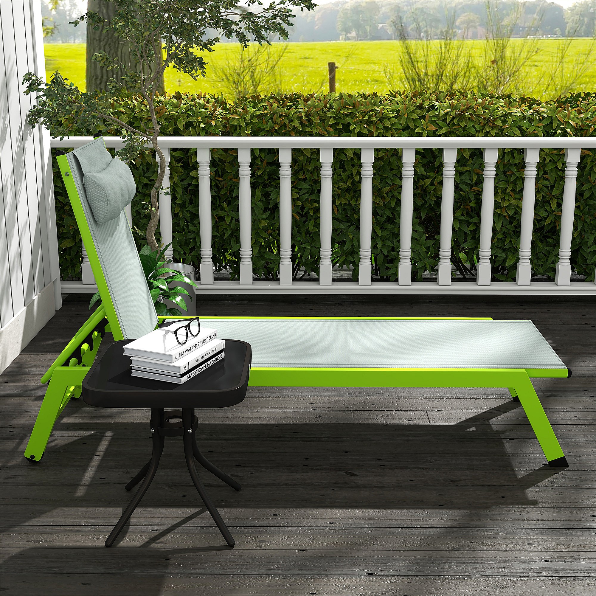 Bain de soleil transat inclinable 5 positions - tétière, 2 roulettes - alu. textilène vert