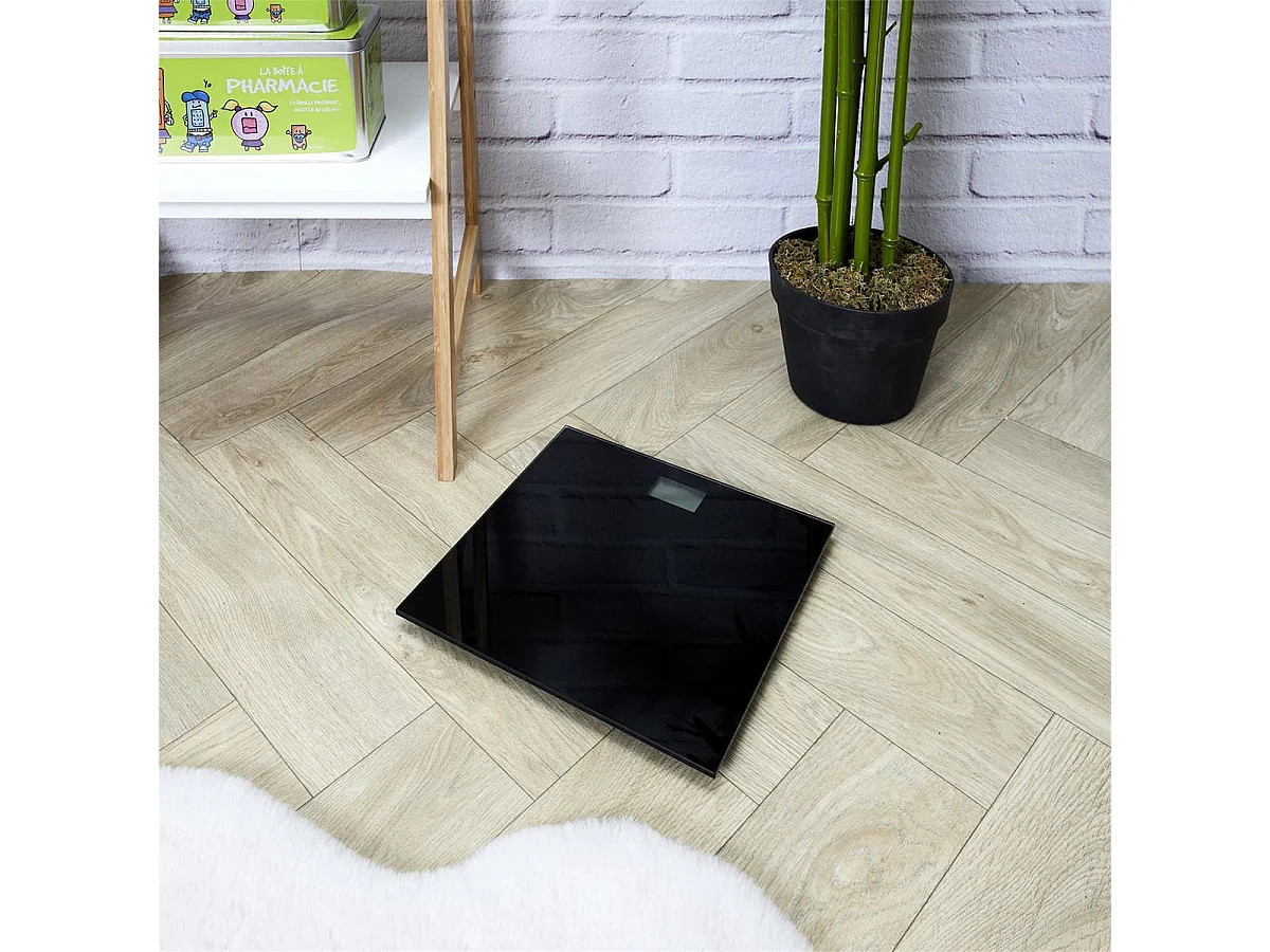 Pèse-Personne Digital en Verre "Miroir" 22cm Noir