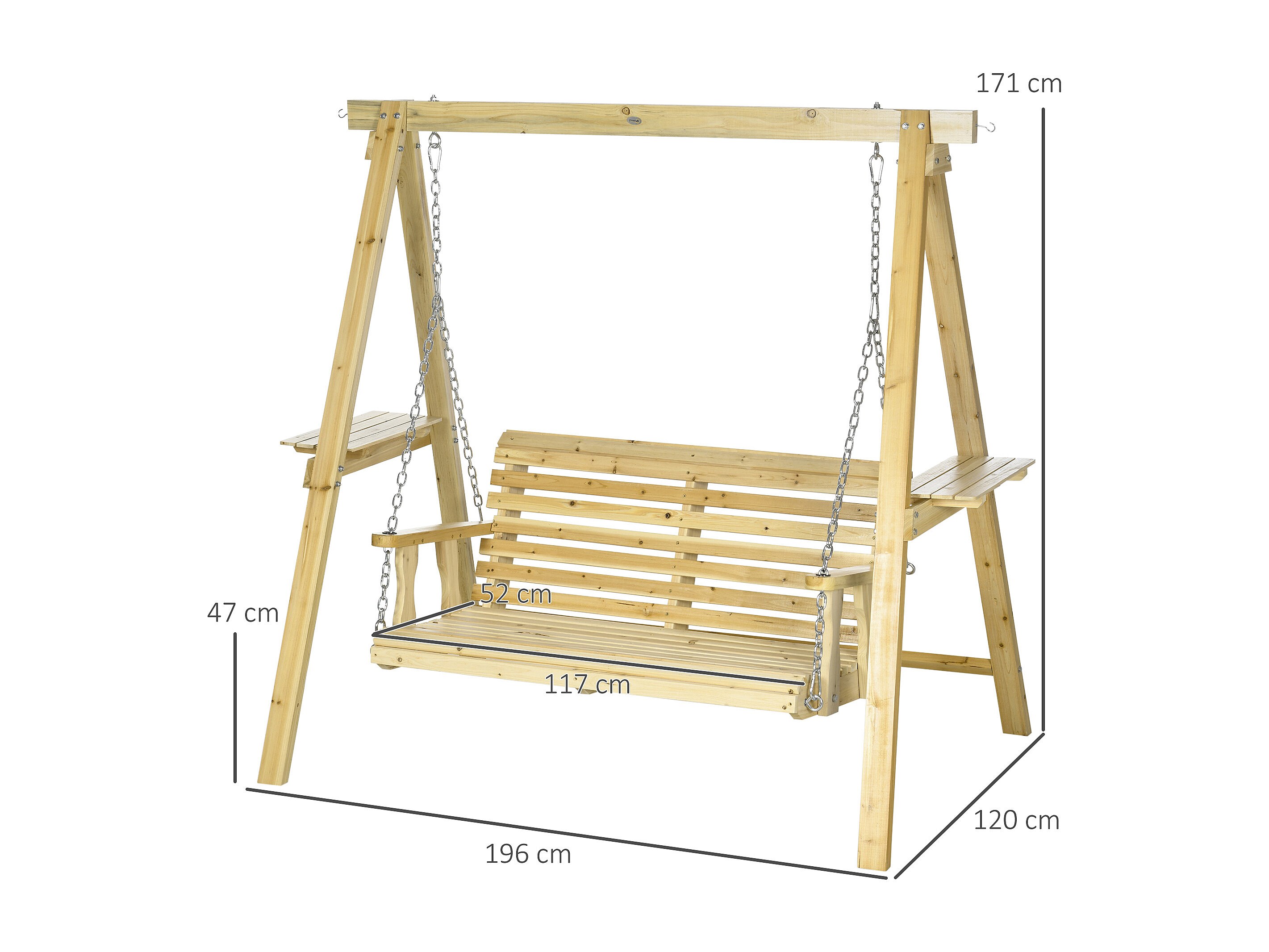 Balancelle de jardin 2 places en bois hauteur réglable - 196 x 120 x 171 cm