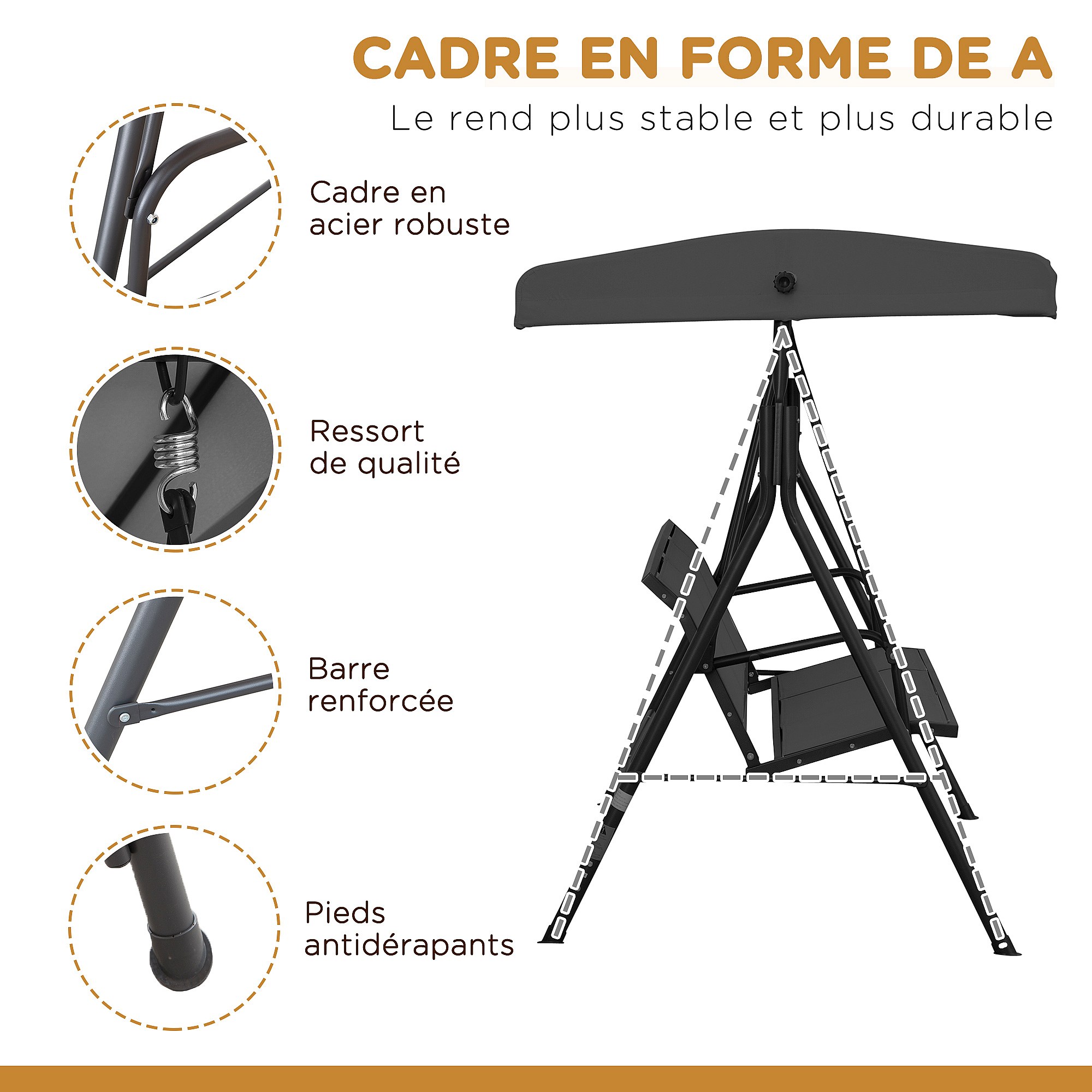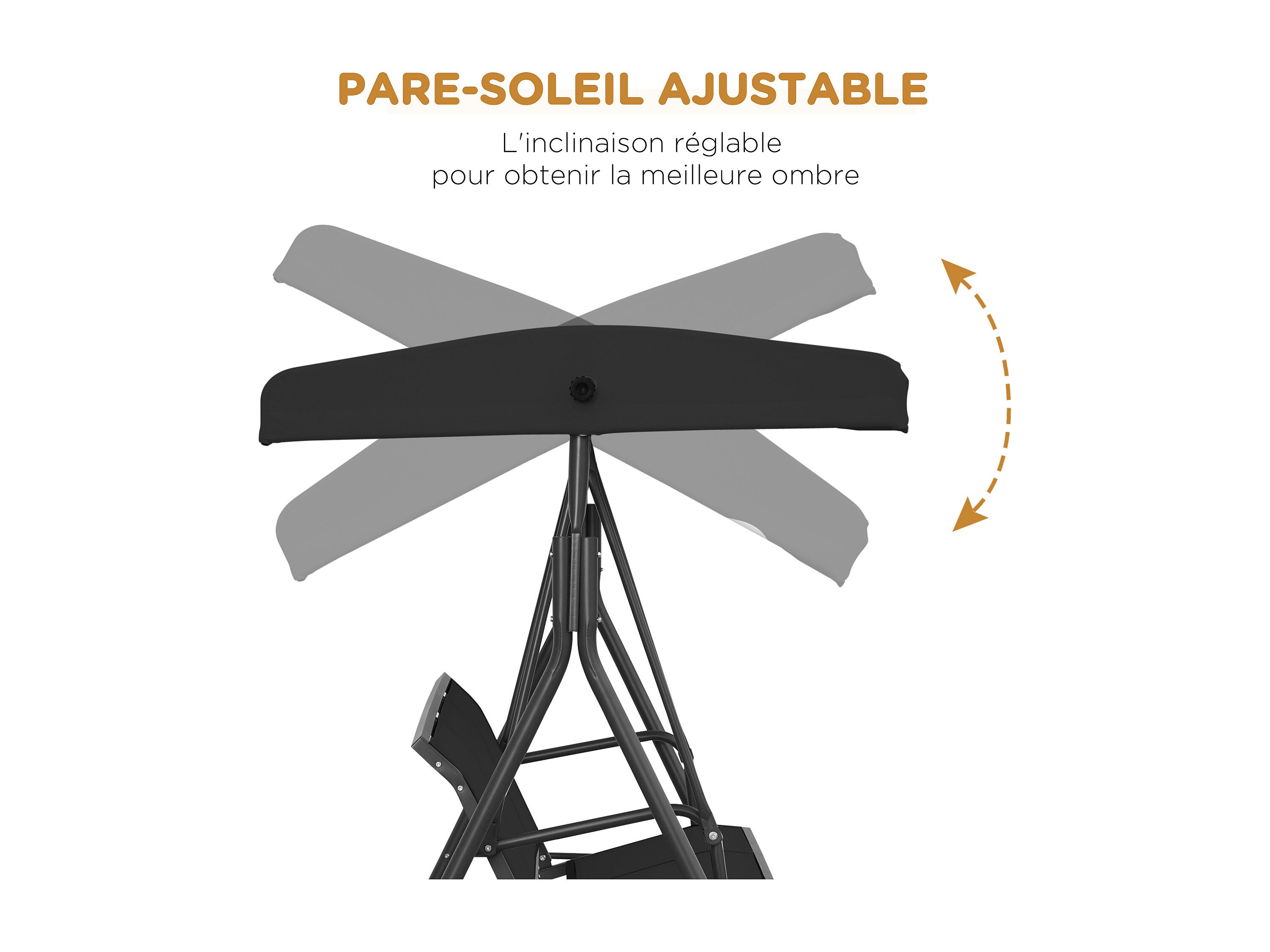 Balancelle de jardin 3 places grand confort toit inclinaison réglable assise et dossier ergonomique acier époxy textilène noir