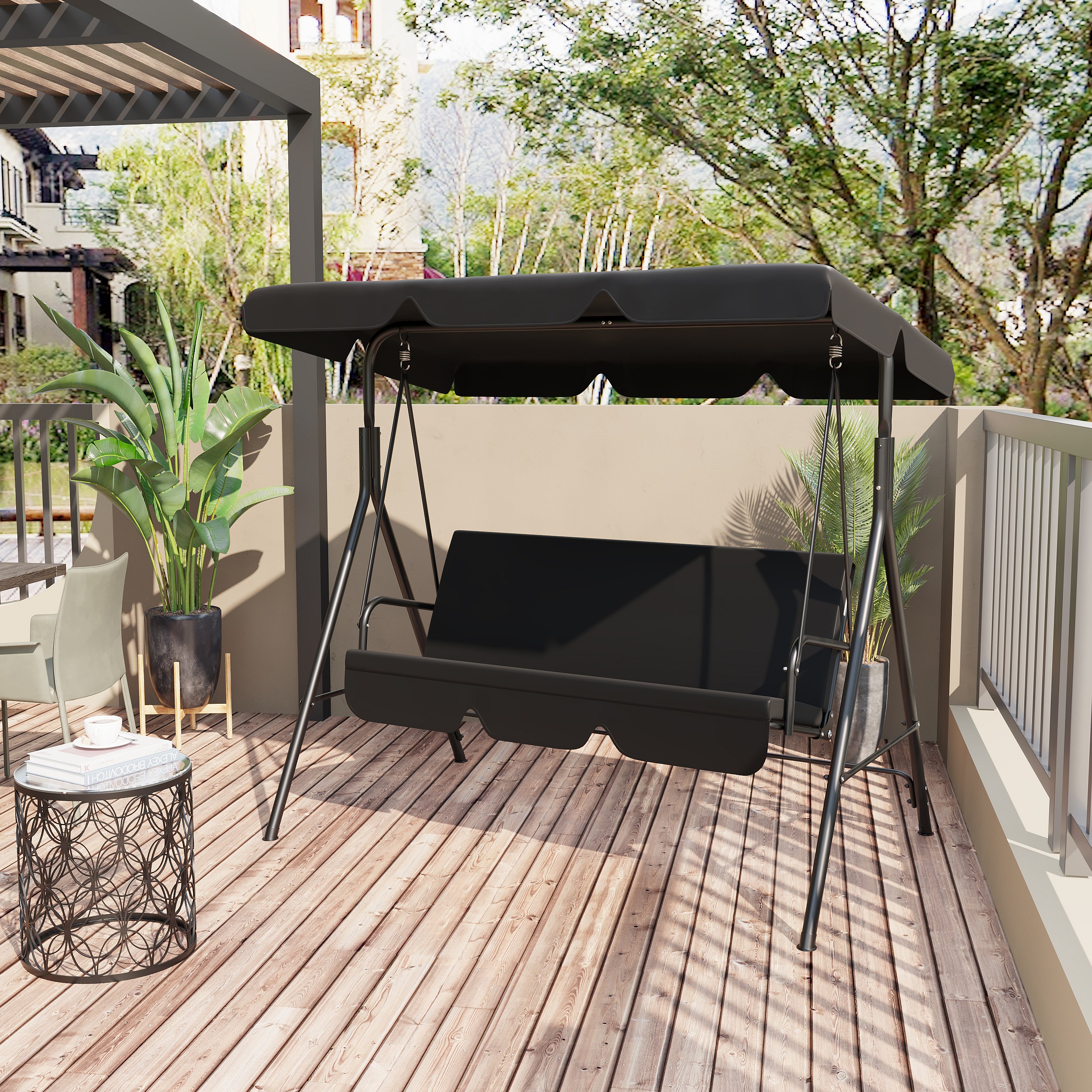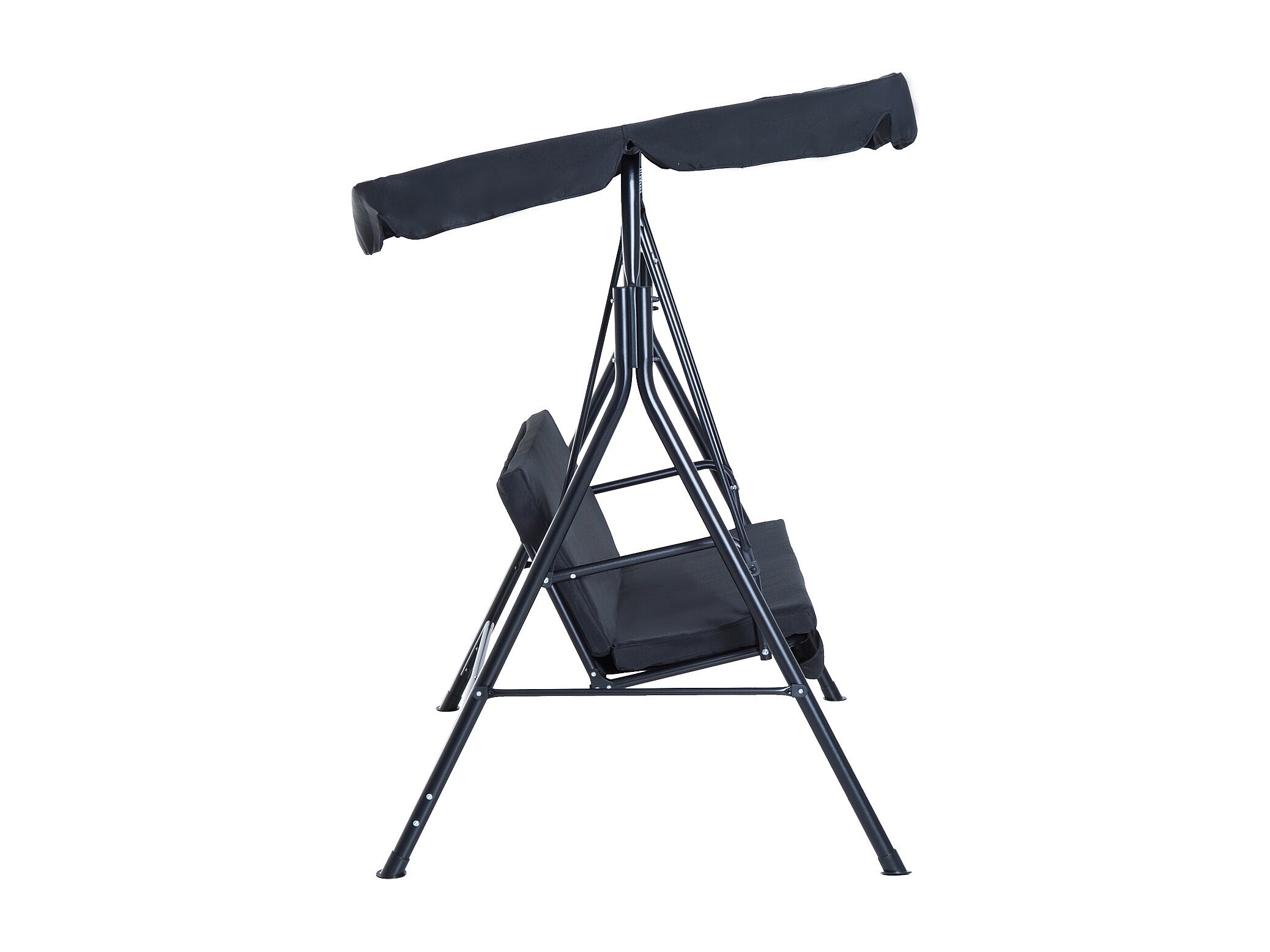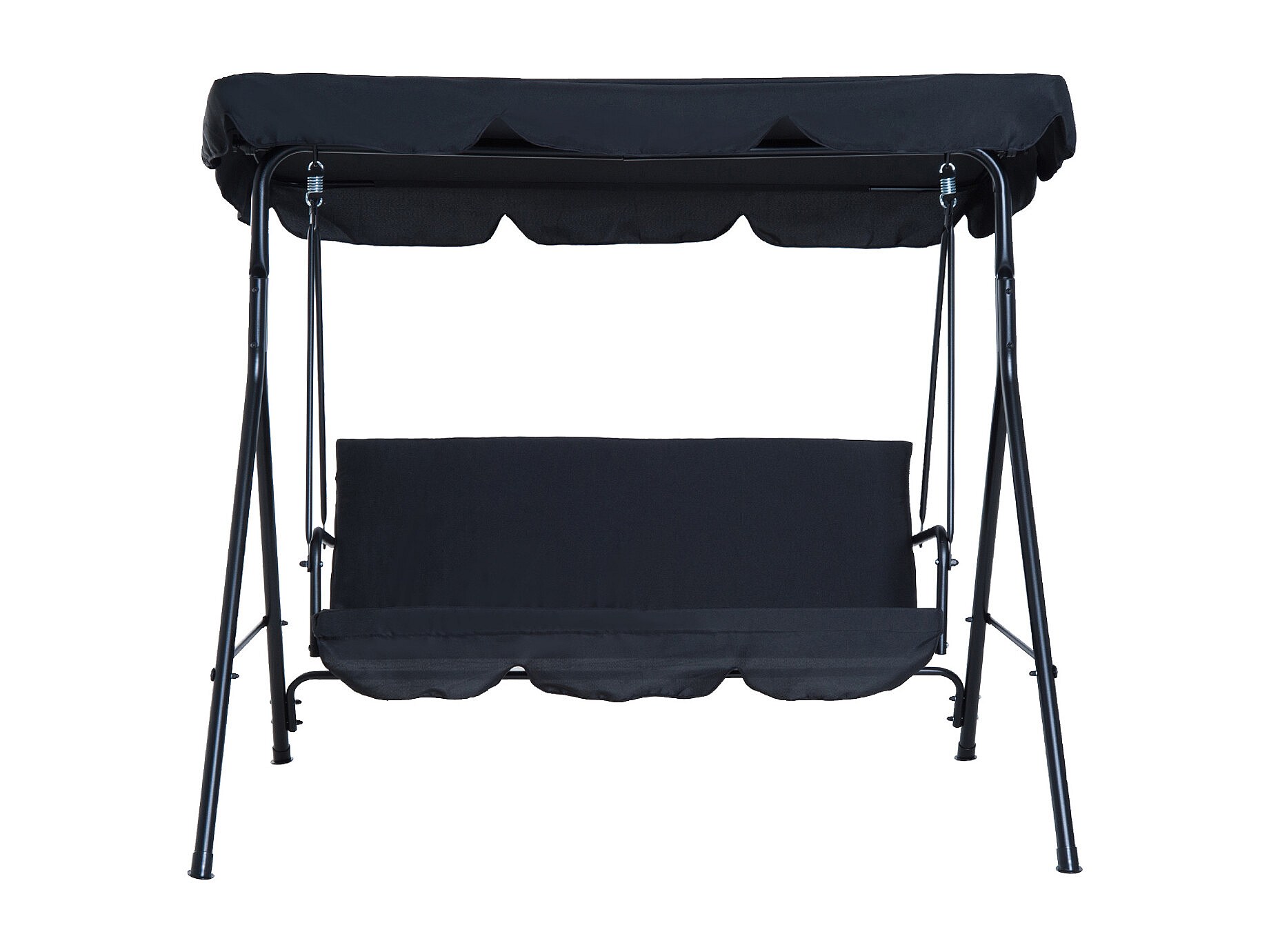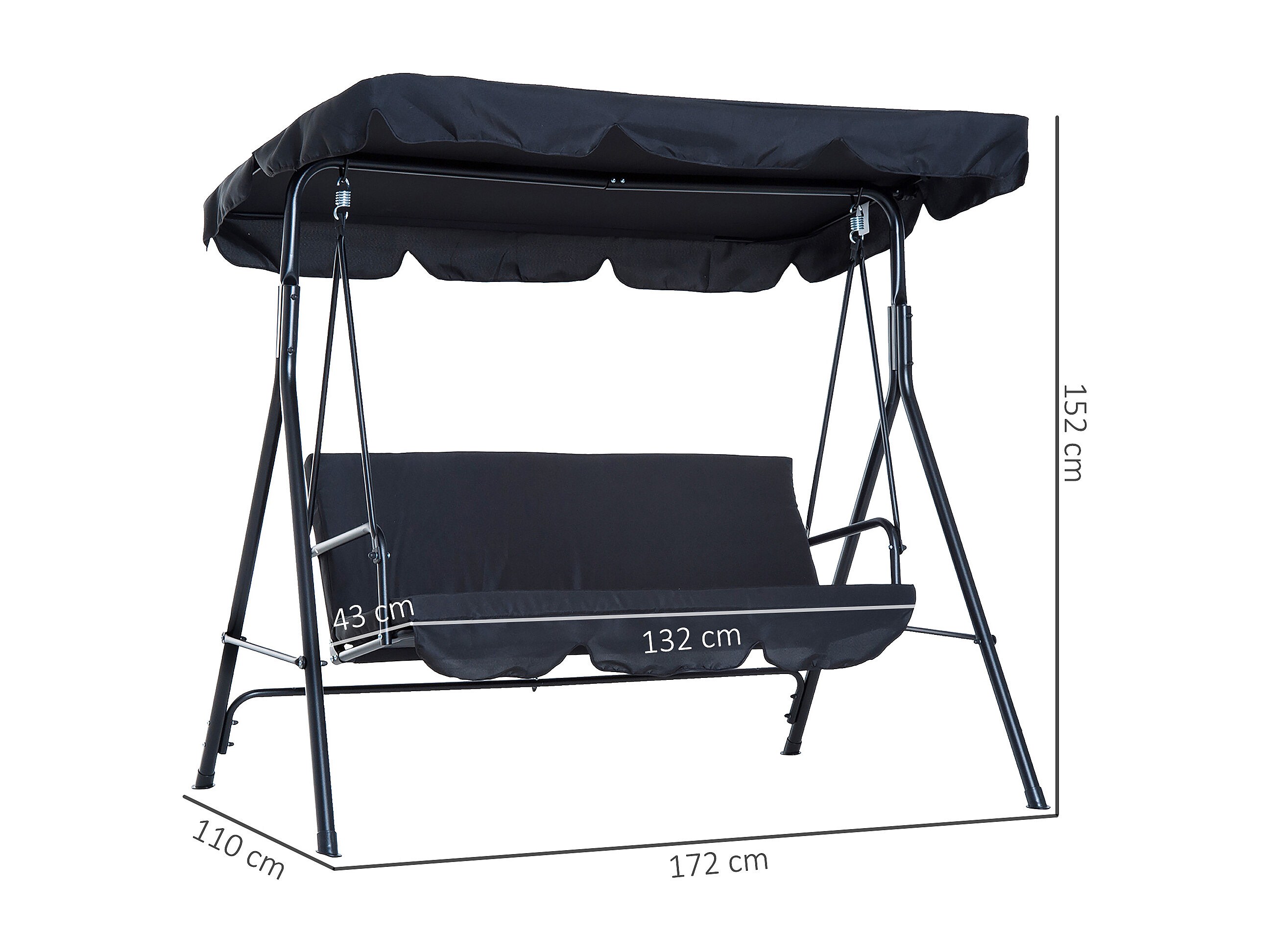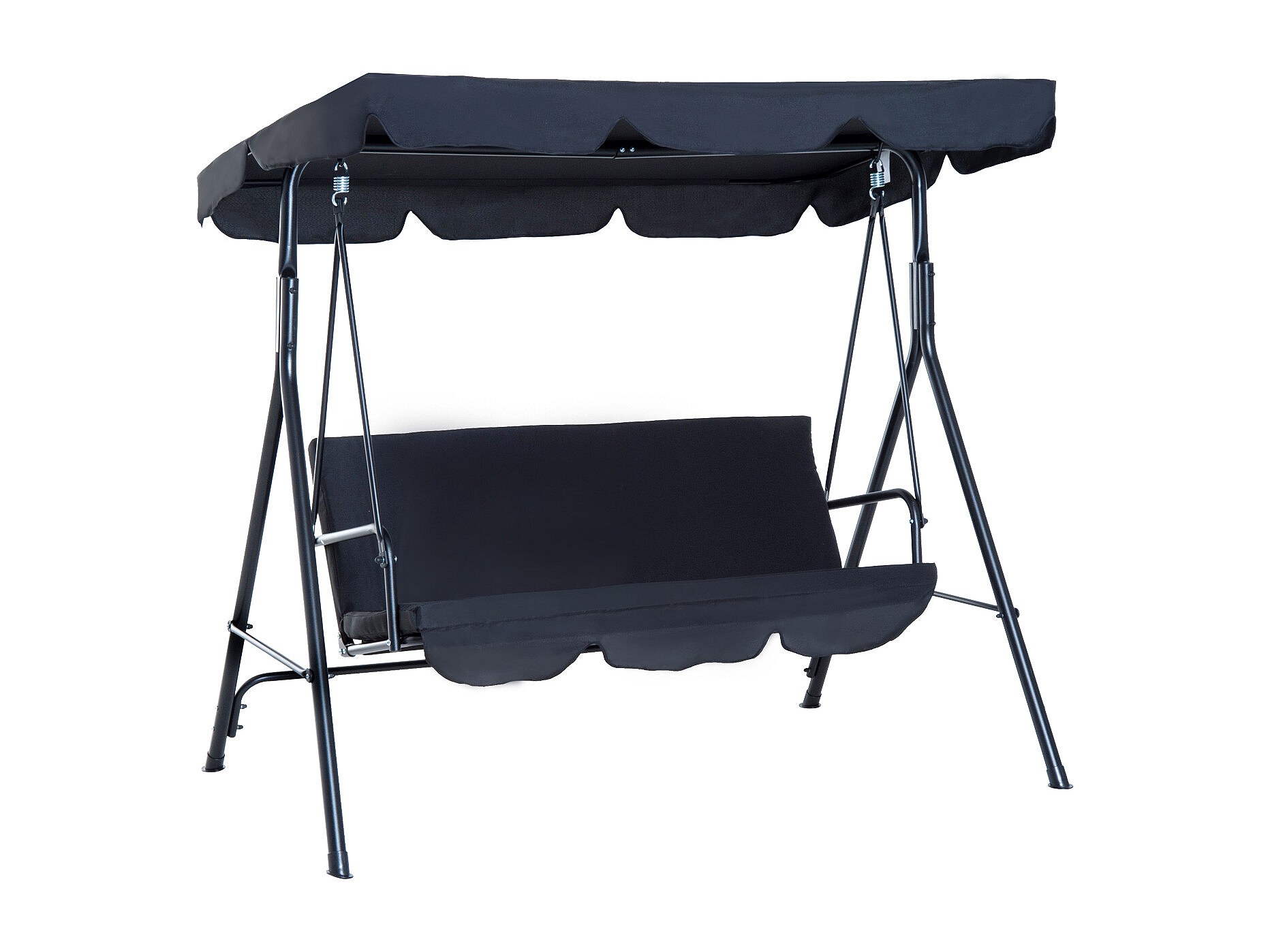 Balancelle de jardin 3 places toit inclinaison réglable coussins assise et dossier 1,72L x 1,1l x 1,52H m acier noir polyester noire