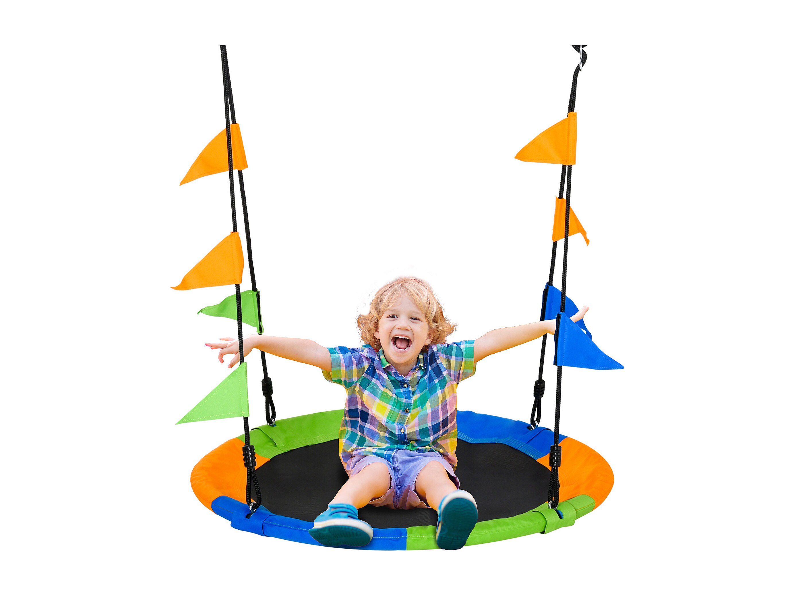 Balançoire Nid d'Oiseau Ronde Ø100CM pour Enfants, avec Oreiller et Poignée Coloré