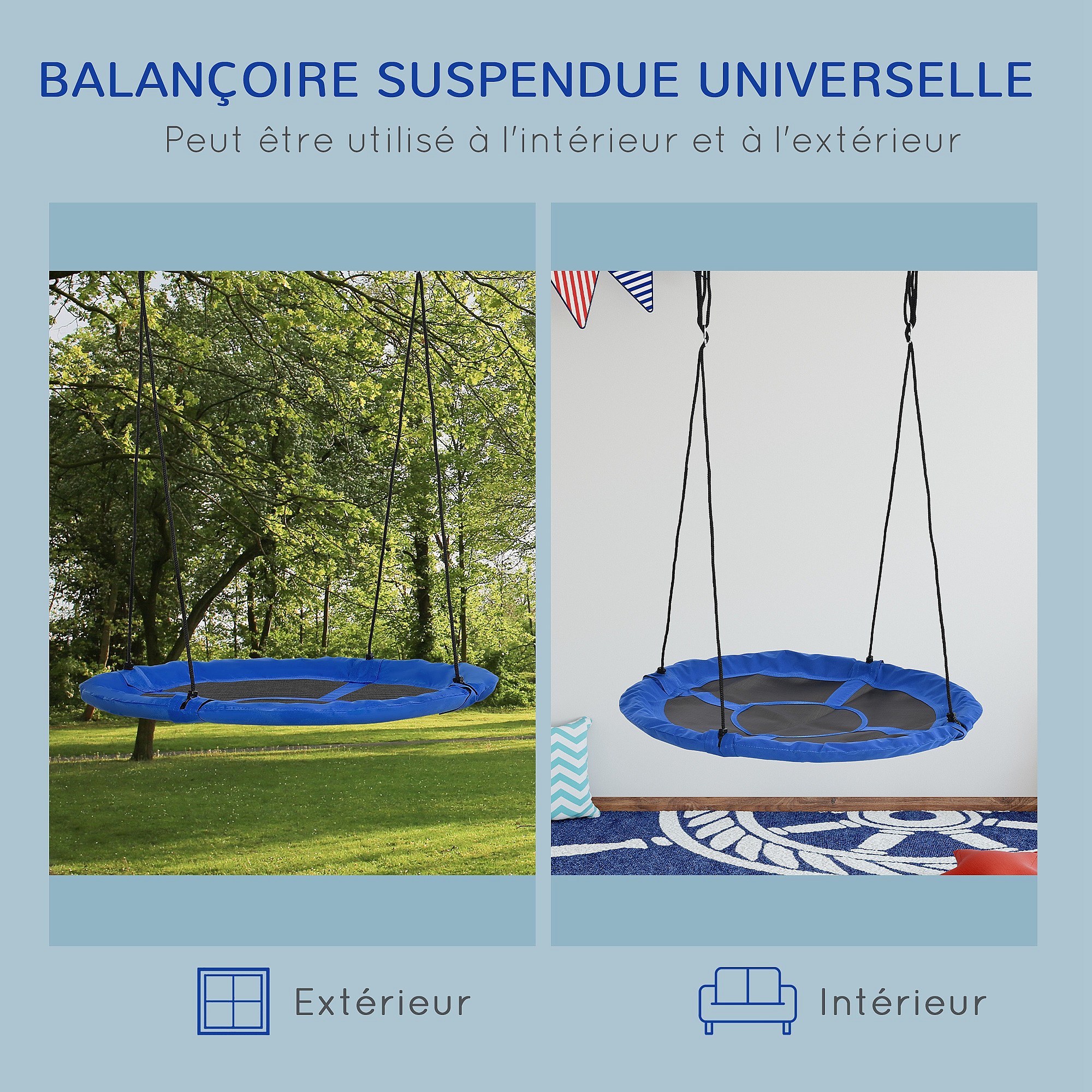 Balançoire nid d'oiseau ronde Ø 110 cm 4 anneaux inclus bleu