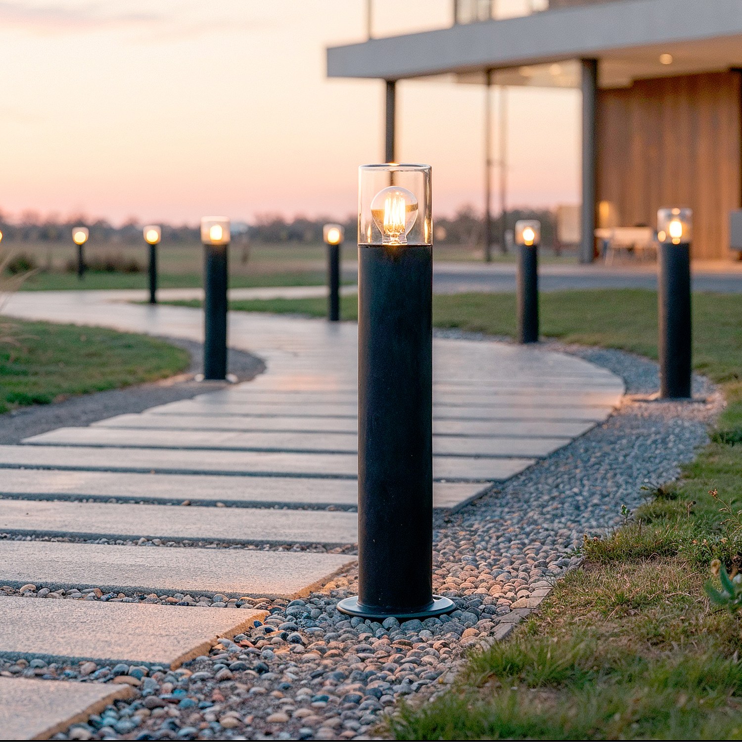 Balise Extérieure en Saillie sur Pied 50cm Acier Inoxidable Emley Noir