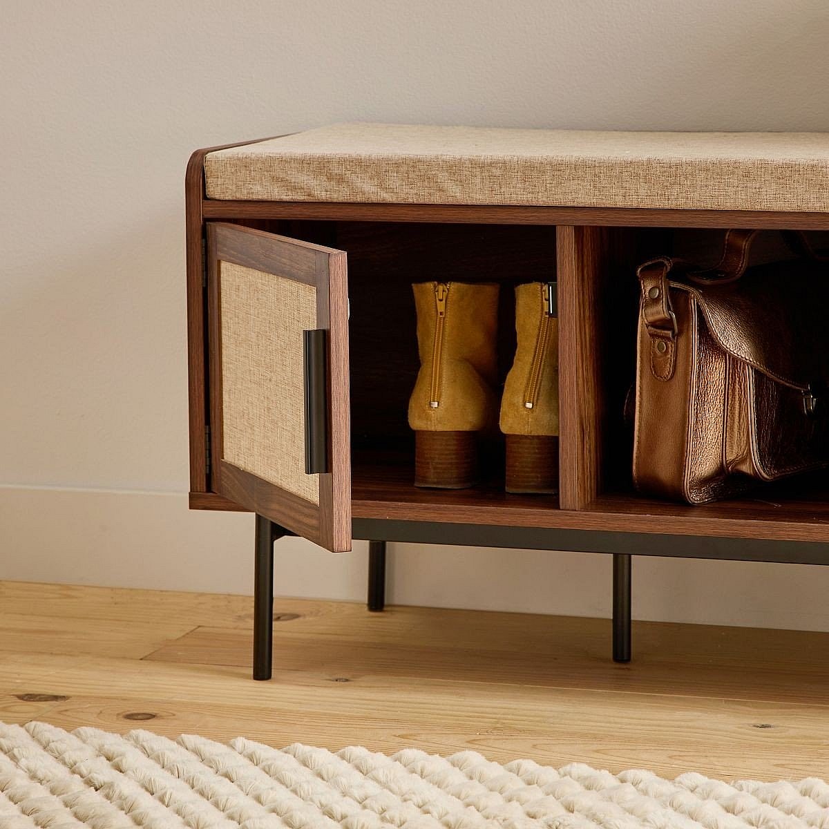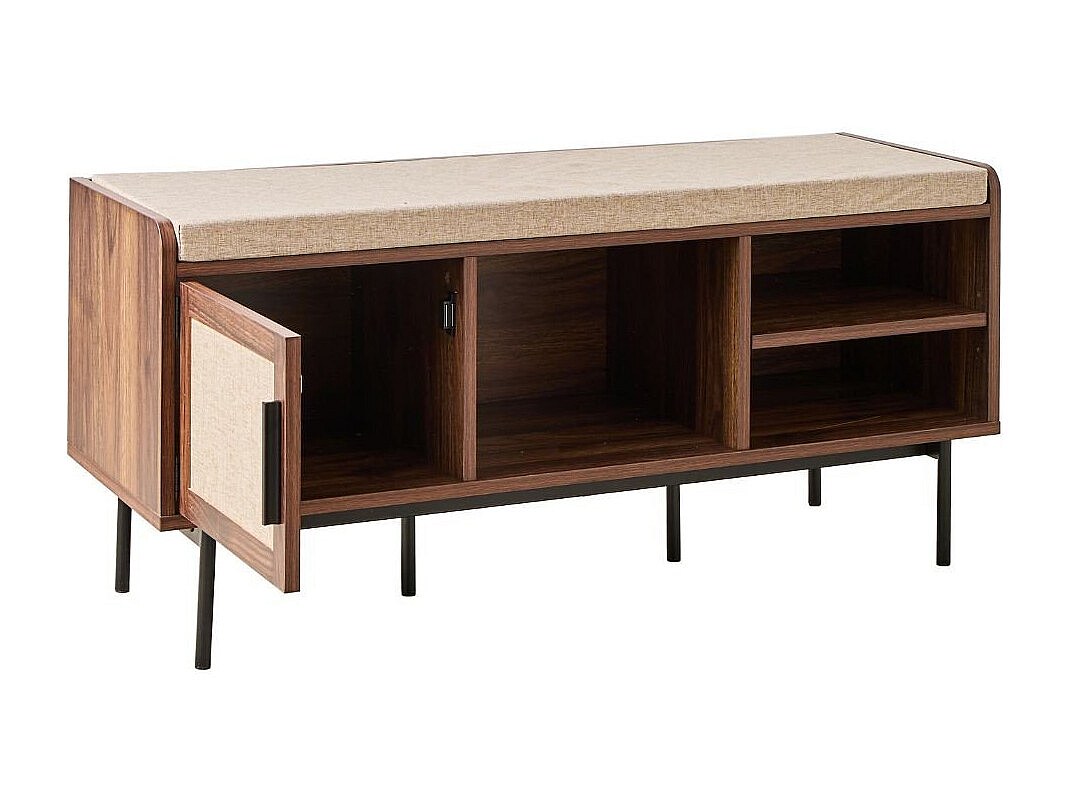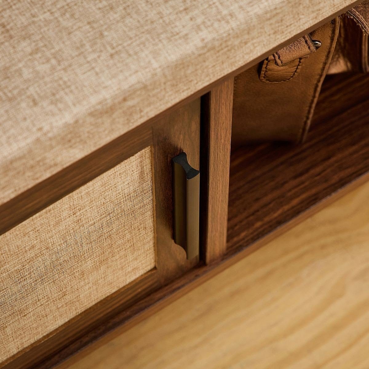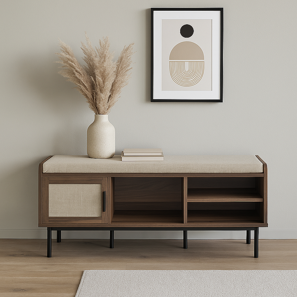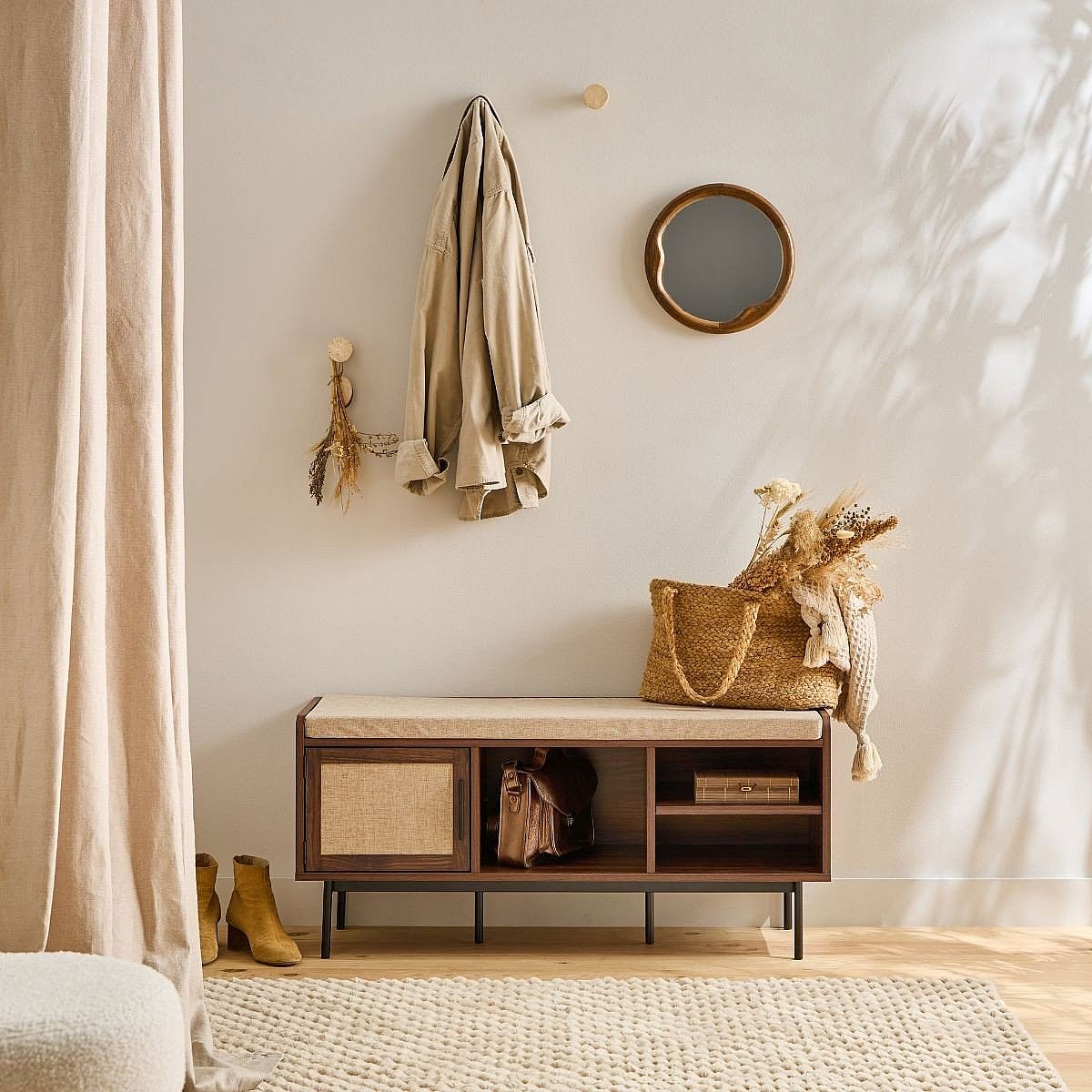 Banc d'entrée décor noyer 1 porte avec façade en tissu JETSON