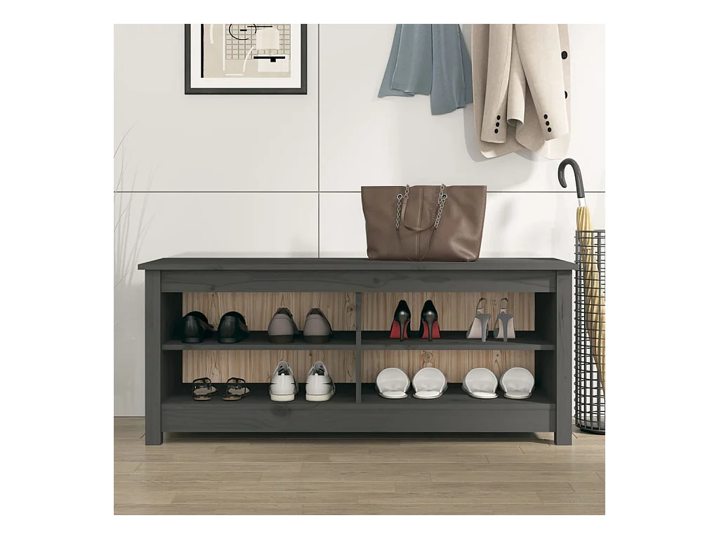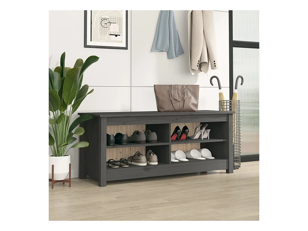 Banc à chaussures Gris 110x38x45,5 cm Bois de pin massif