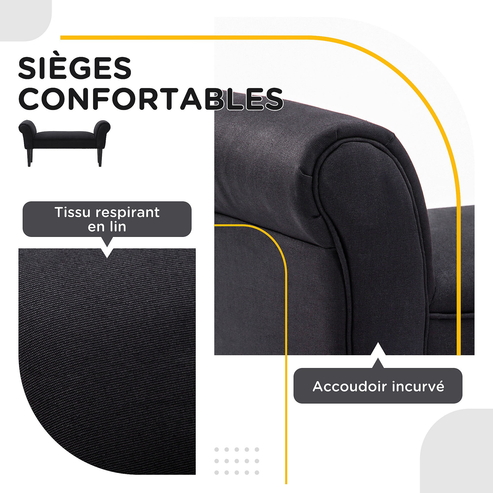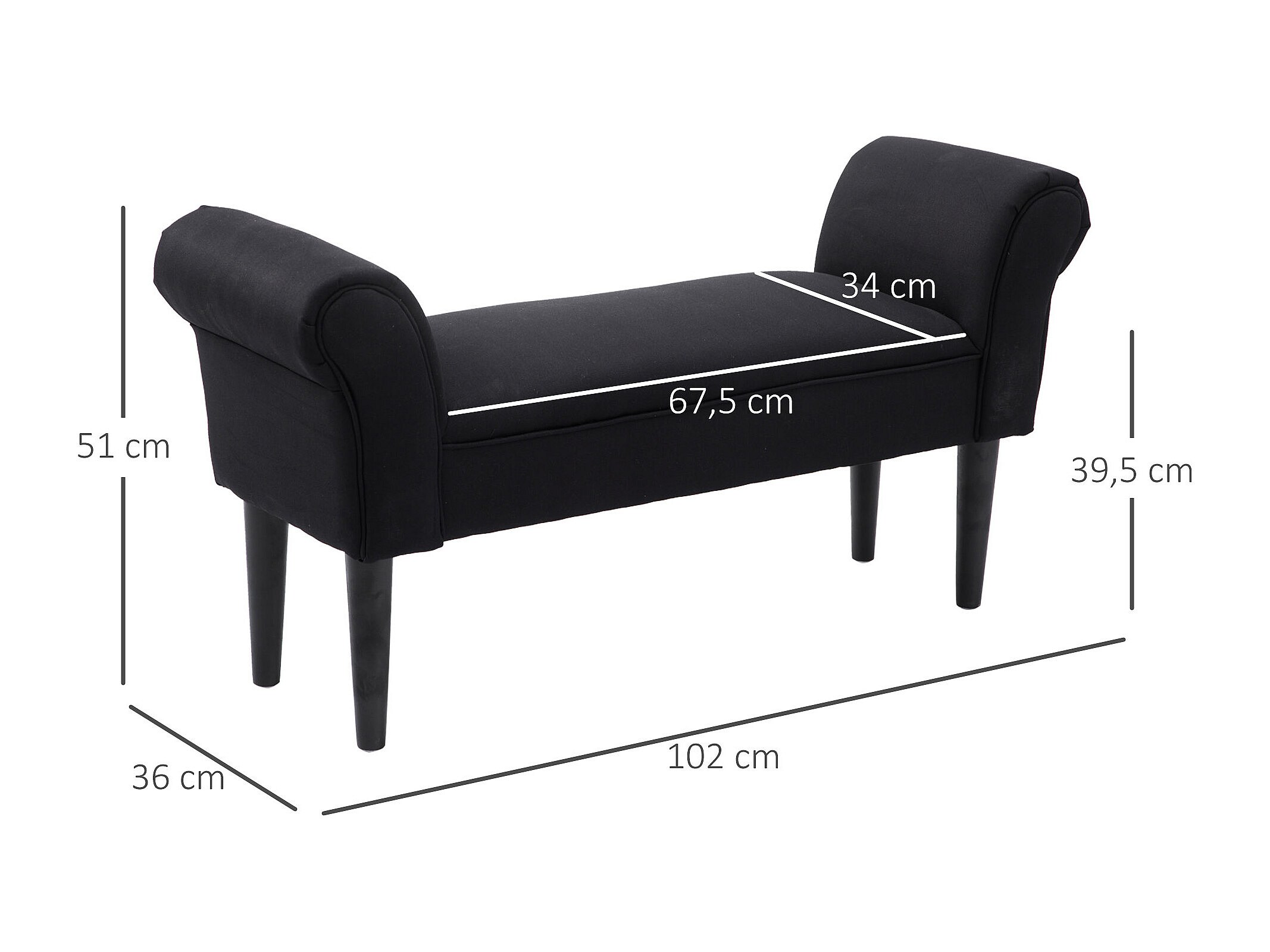 Banc banquette design contemporain accoudoirs courbés grand confort 102L x 31l x 51H cm noir