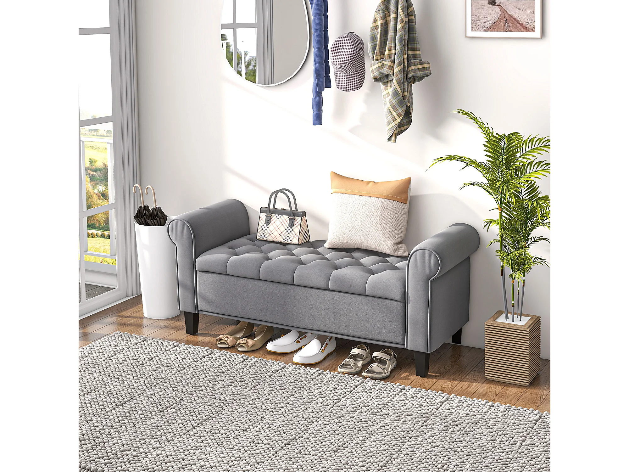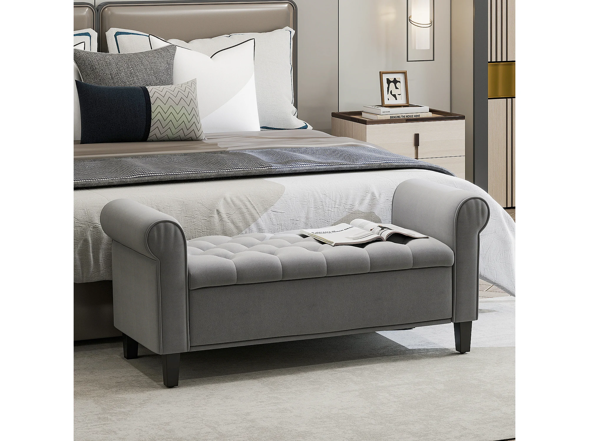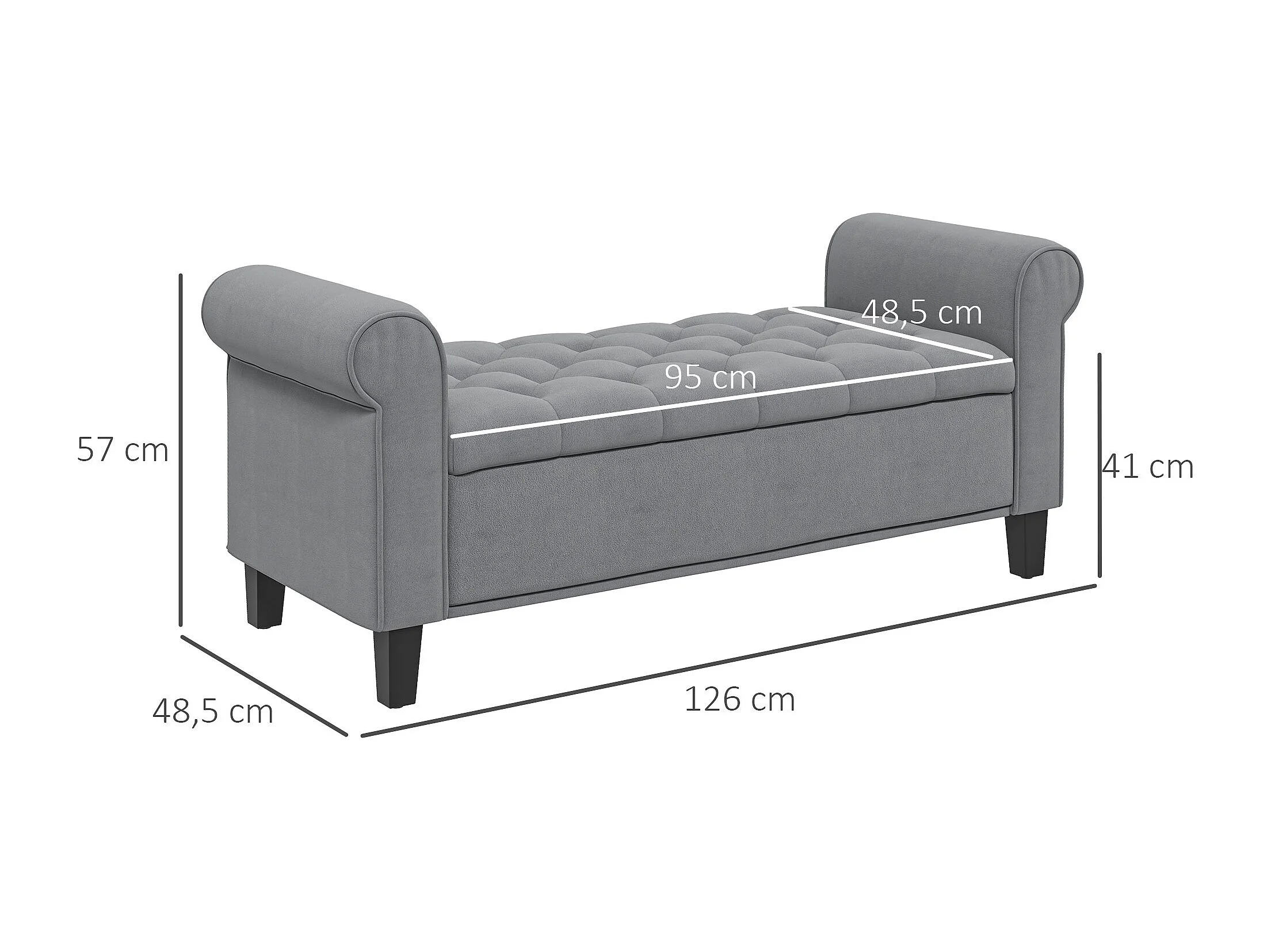 Banc coffre banquette coffre de rangement velours dim. 126 x 48,5 x 57 cm piètement bois hévéa noir gris