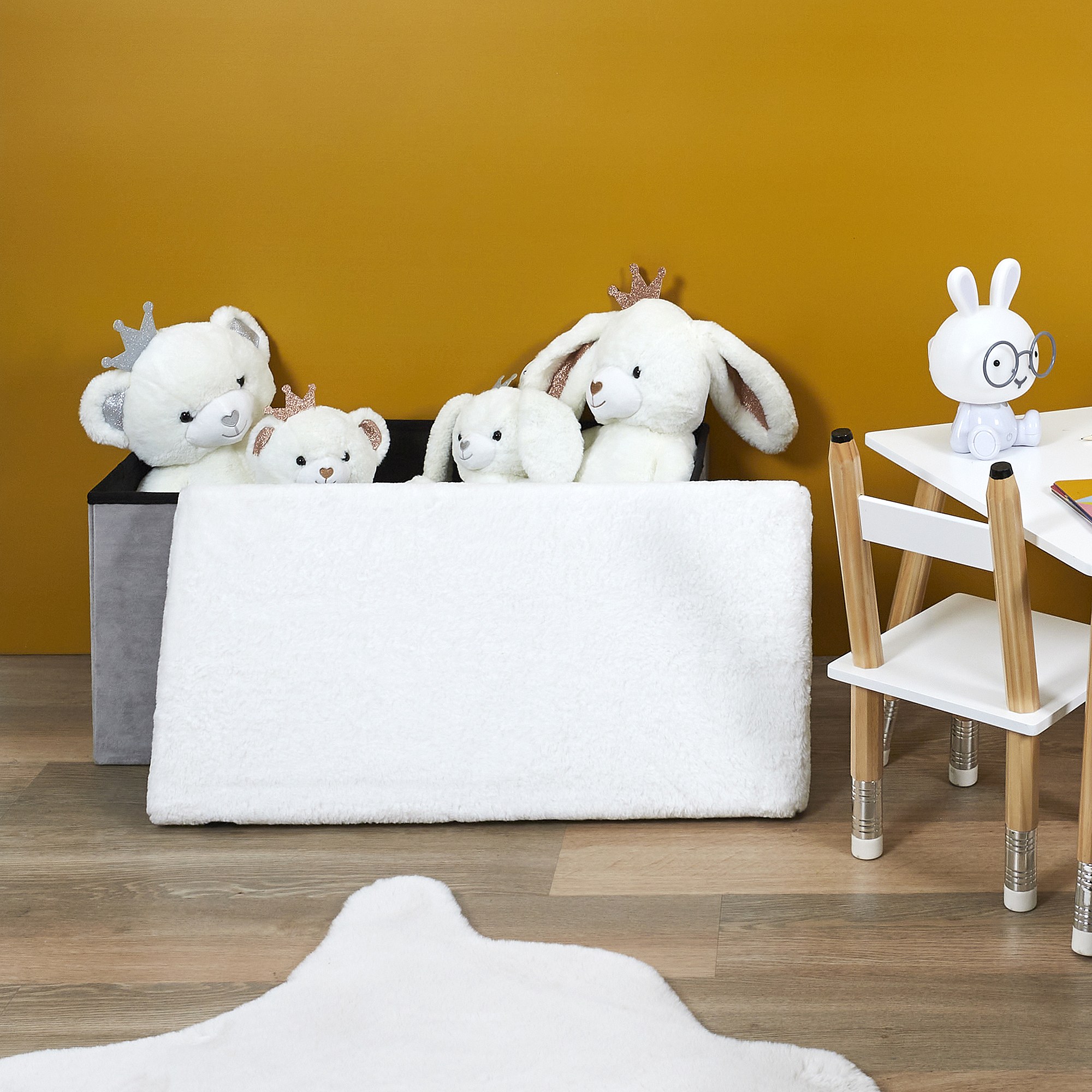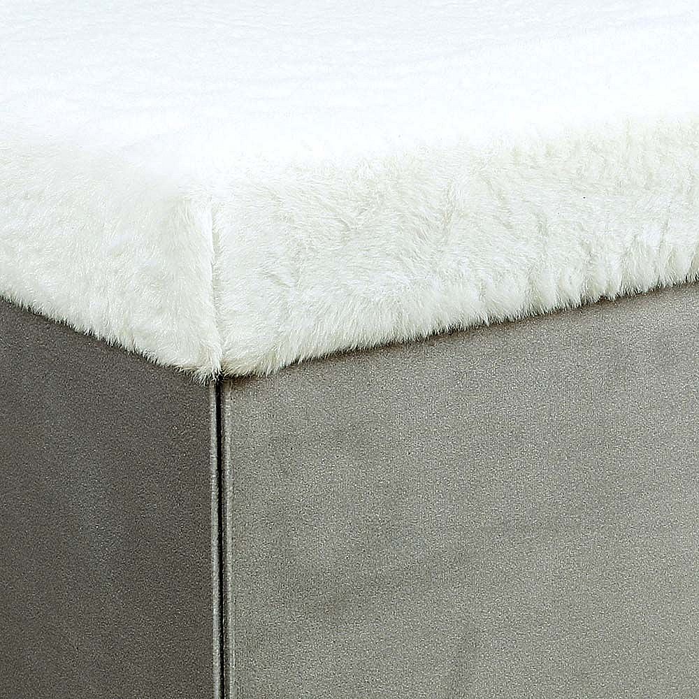 Coffre Banc Pliable Gris Imitation Fourrure Leo Gris, Blanc