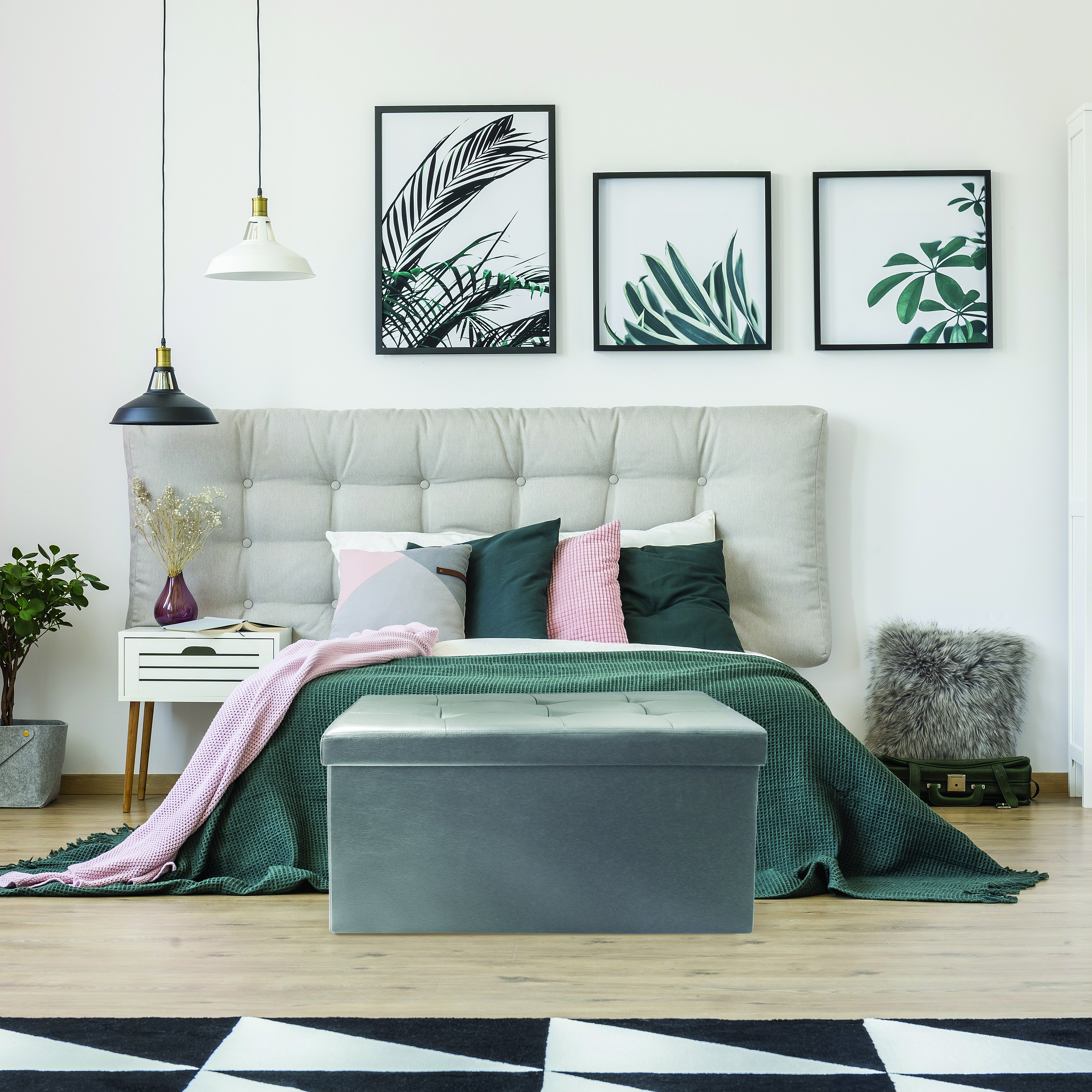 Coffre/pouf pliable en MDF et polyuréthane coloris gris - Dim : L76 x l38 x H38 cm