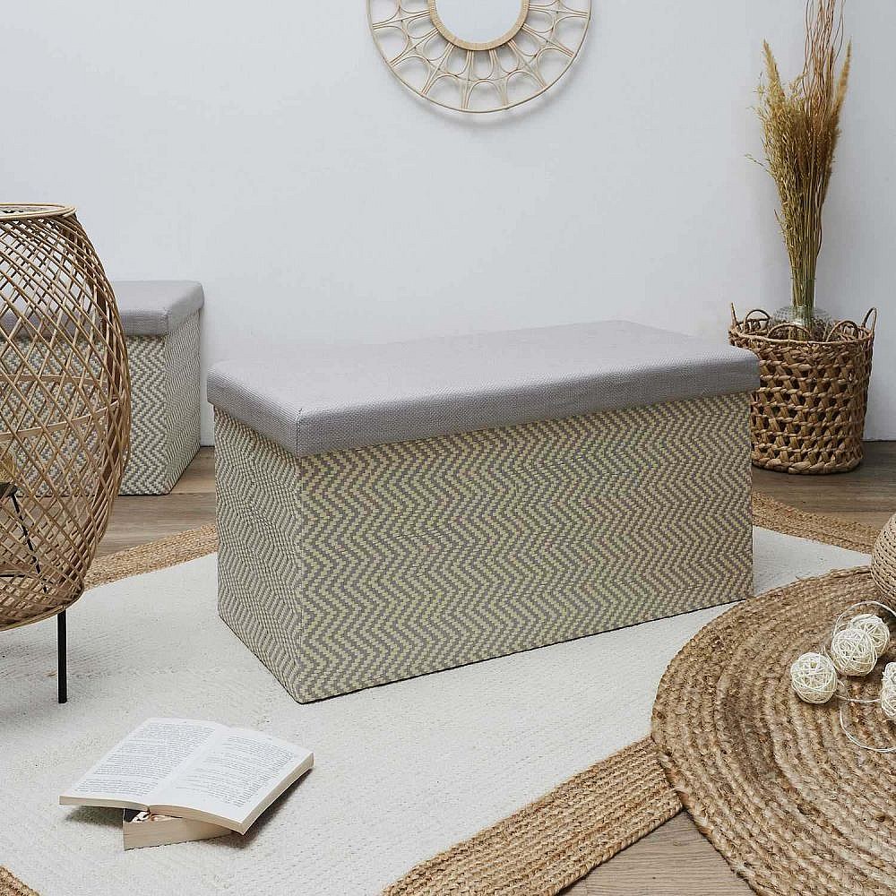 Pouf coffre de rangement en tissu texturé beige TINETIA