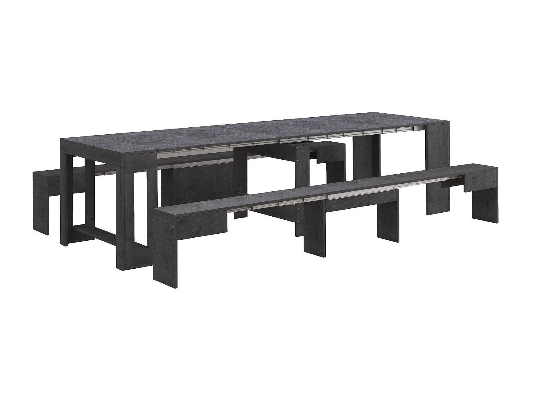 Banc Dcolasuon, Lot de 2 Sièges pour table à manger, Bancs extensibles, 290x25h45 cm, Ardoise