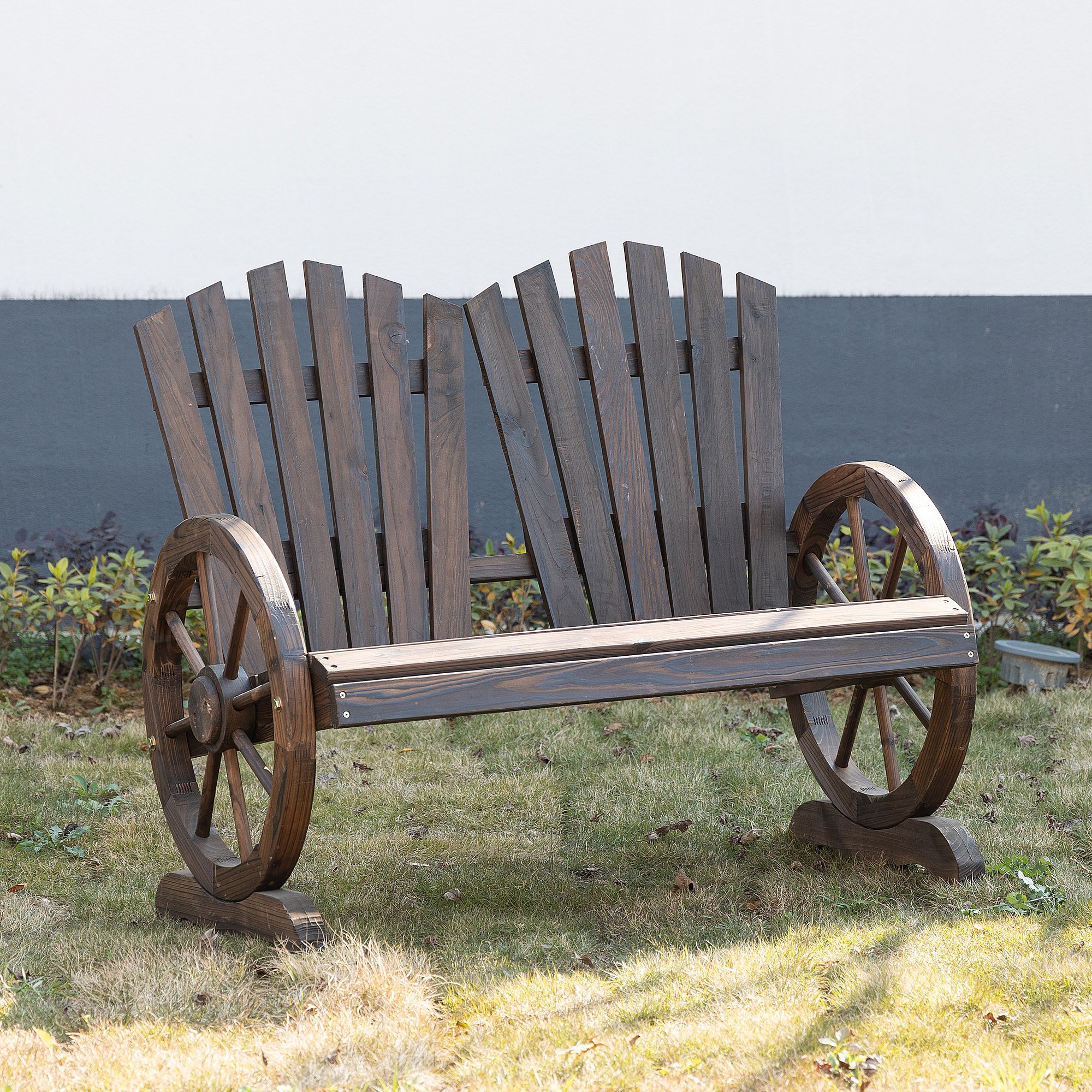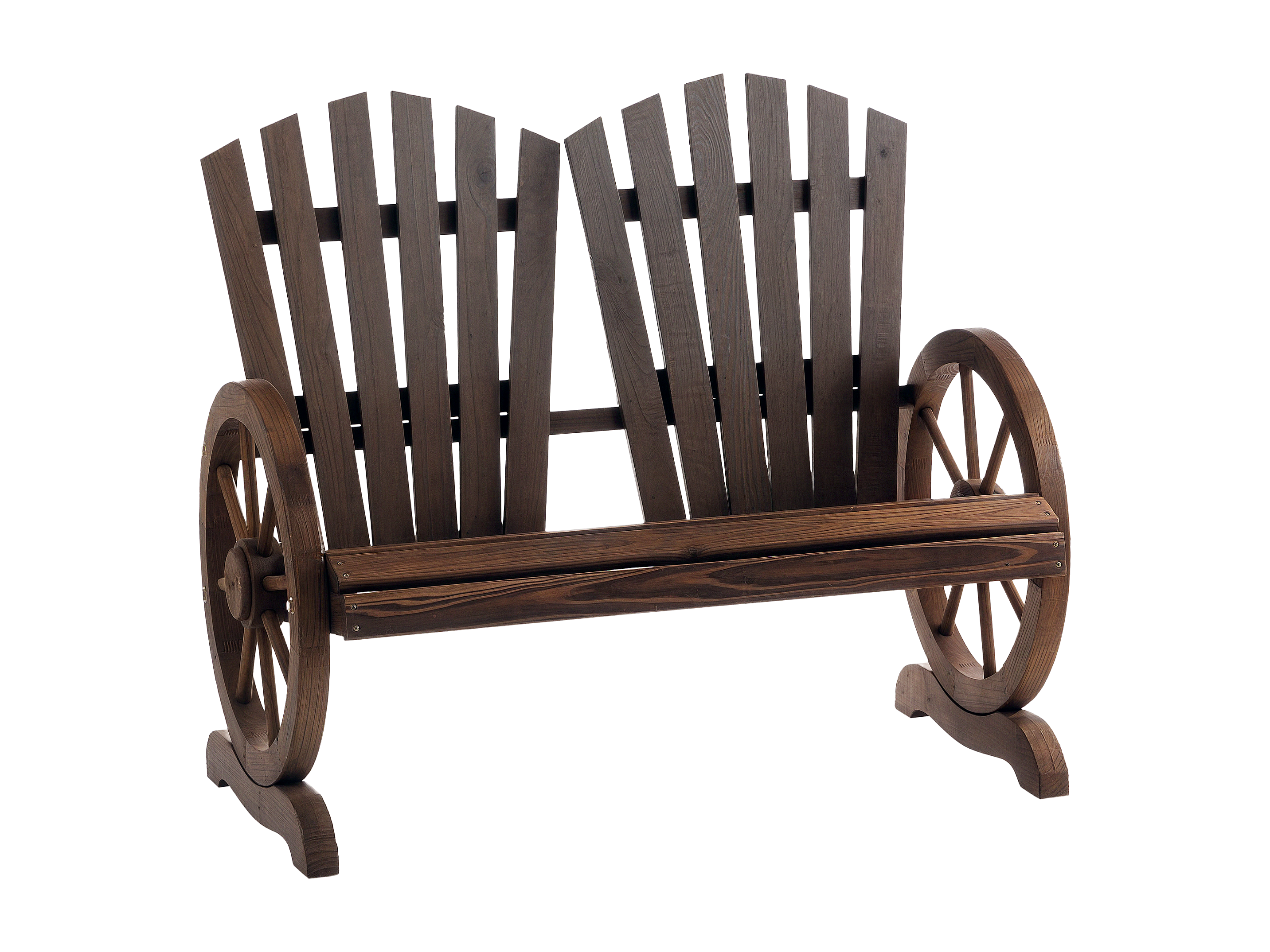 Banc de jardin 2 places Adirondack style rustique chic accoudoirs roues charette bois sapin traité carbonisation