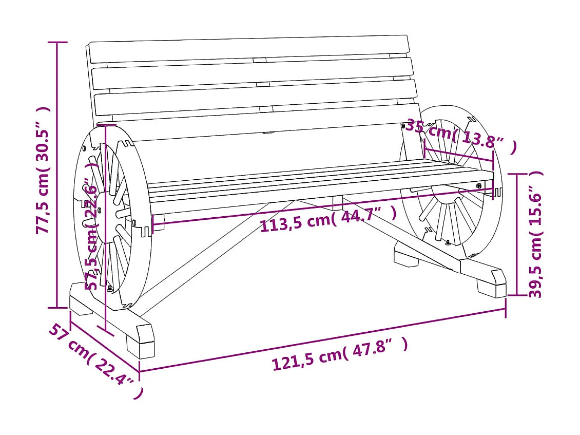 Banc de jardin marron miel 111,5x53x71 cm bois massif de pin