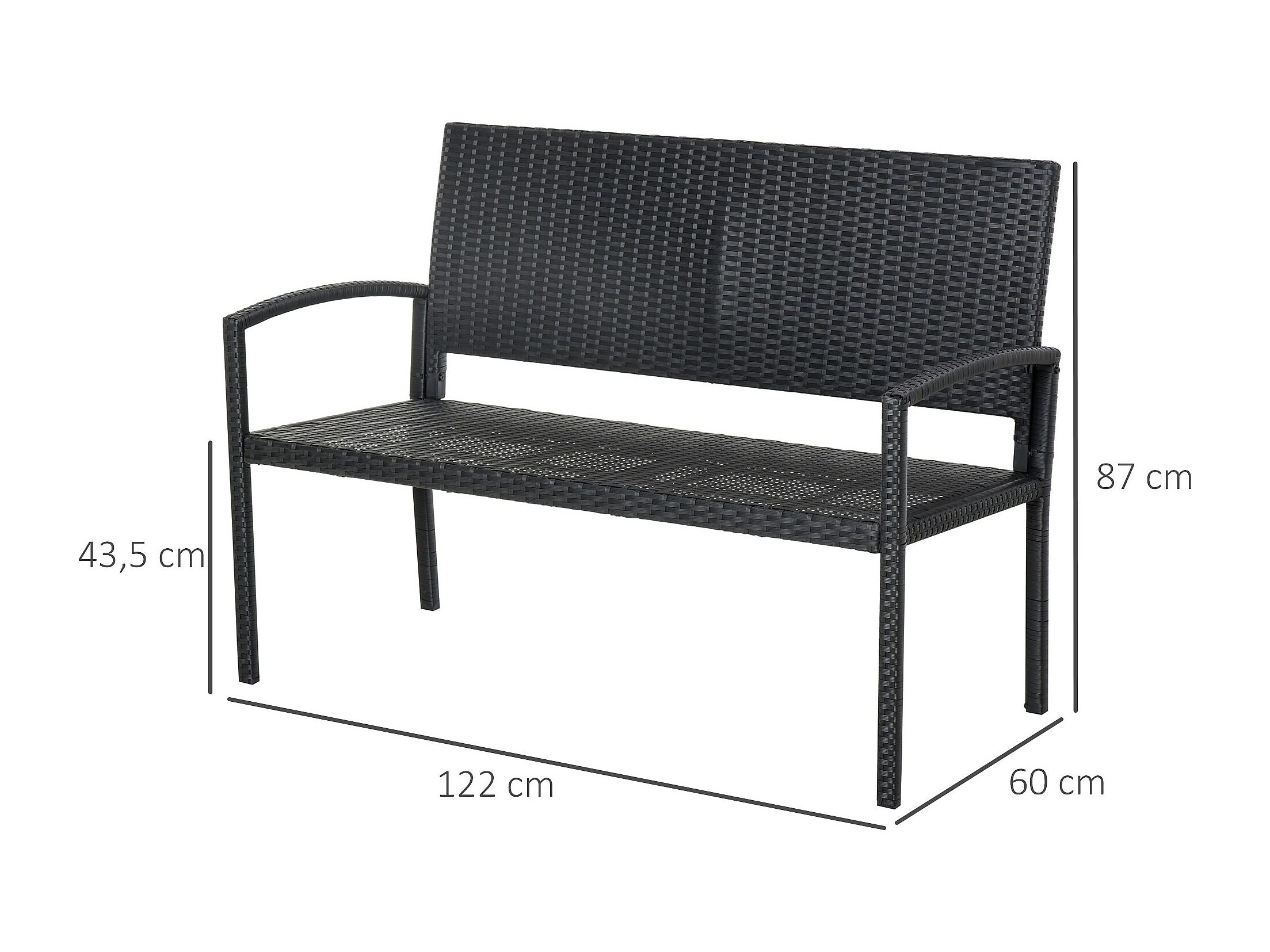 Banc de jardin 2 places style cosy chic résine tressée 4 fils imitation rotin noir