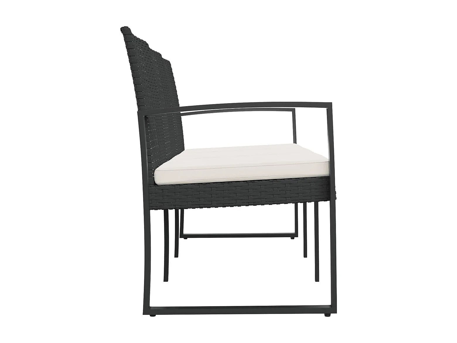 Banc de jardin à 3 places avec coussins noir rotin PP