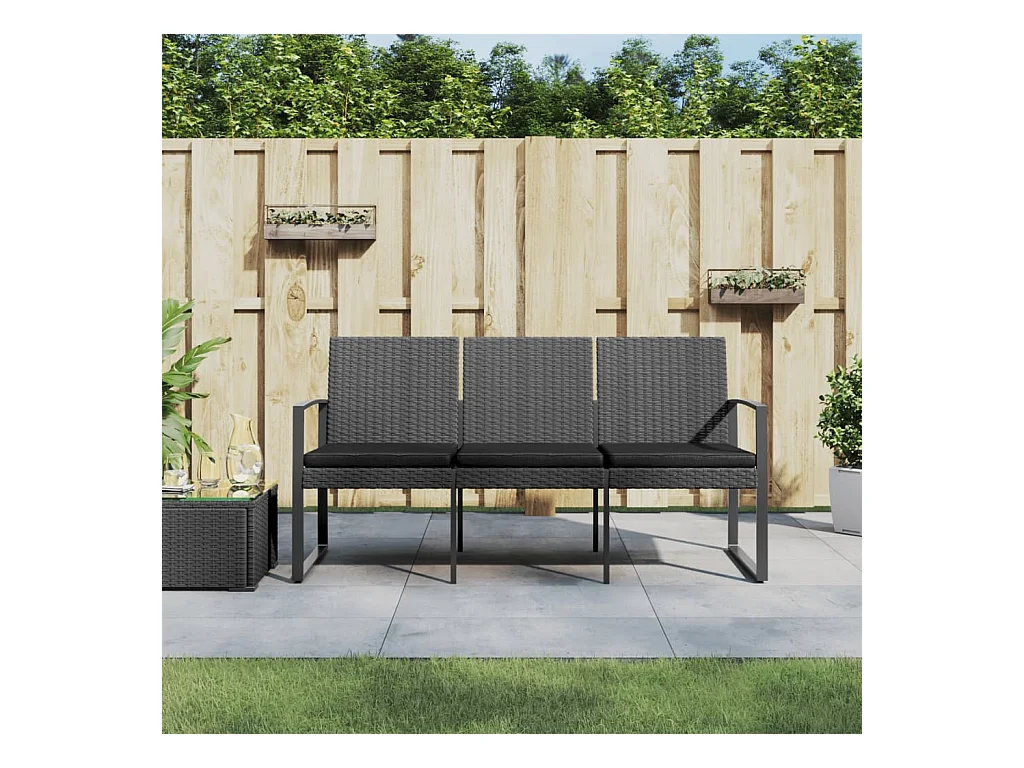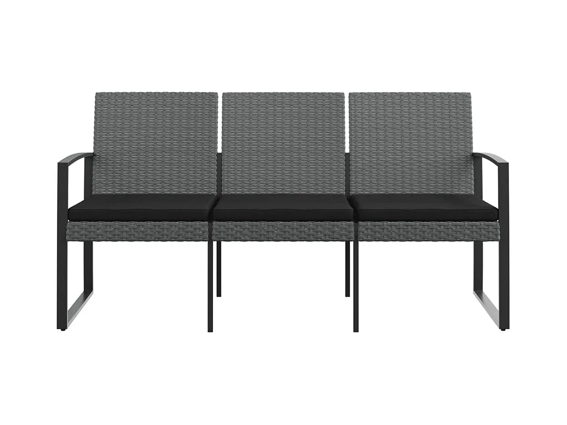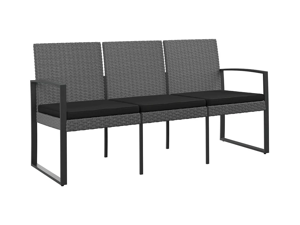 Banc de jardin à 3 places et coussins gris foncé PP rotin REO61156