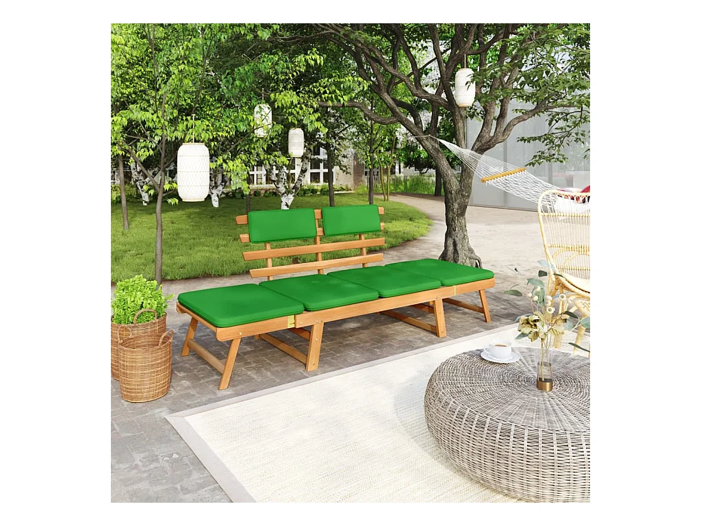 Banc de jardin avec coussins 2-en-1 190 cm Bois solide d'acacia REO93788