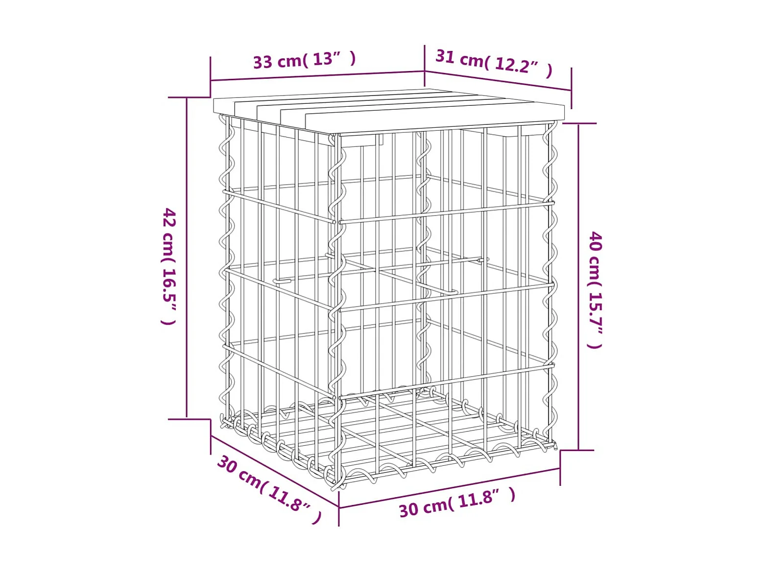 Banc de jardin design de gabion 33x31x42 bois massif de pin