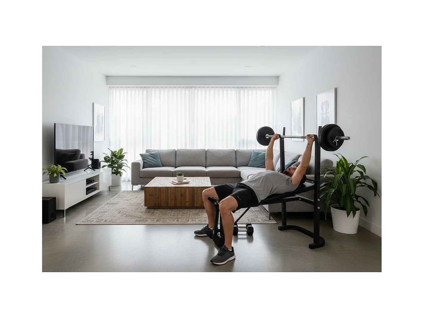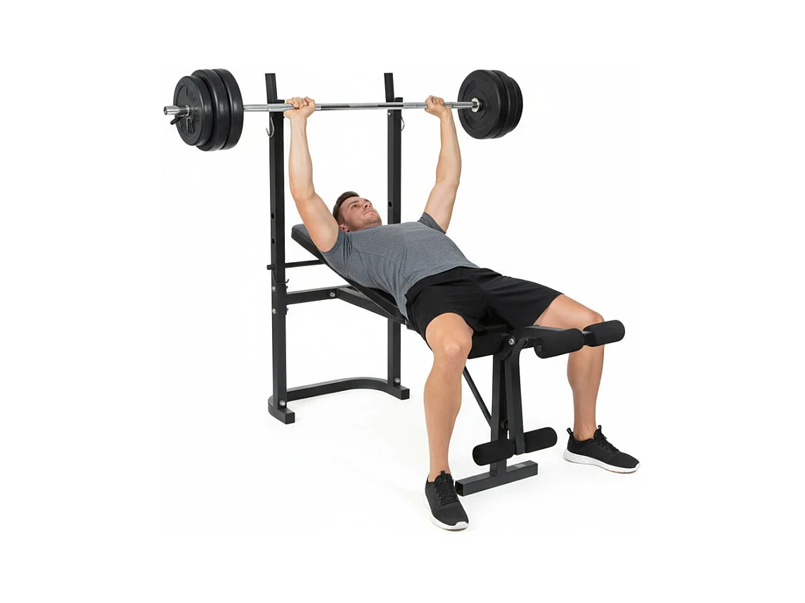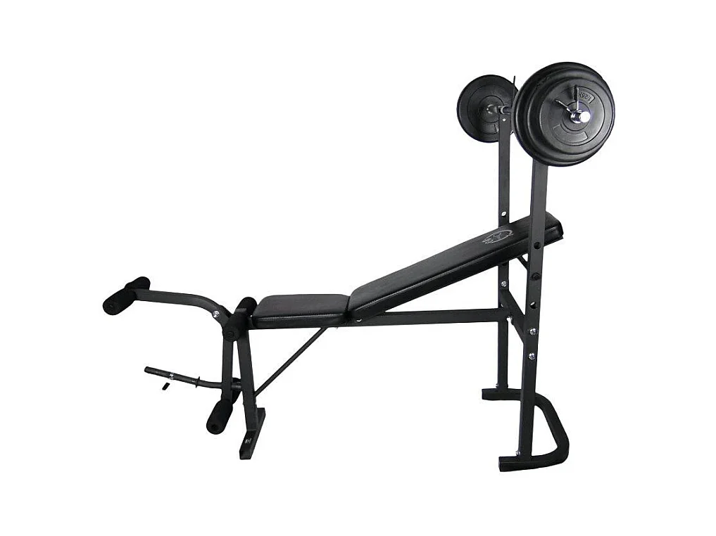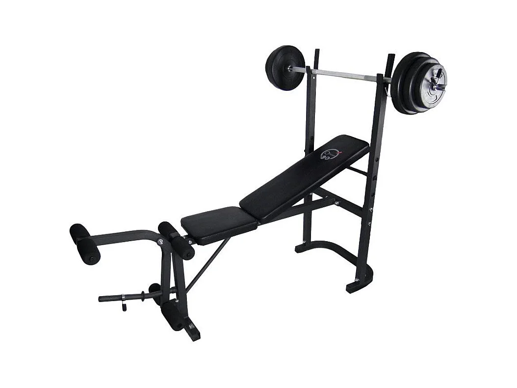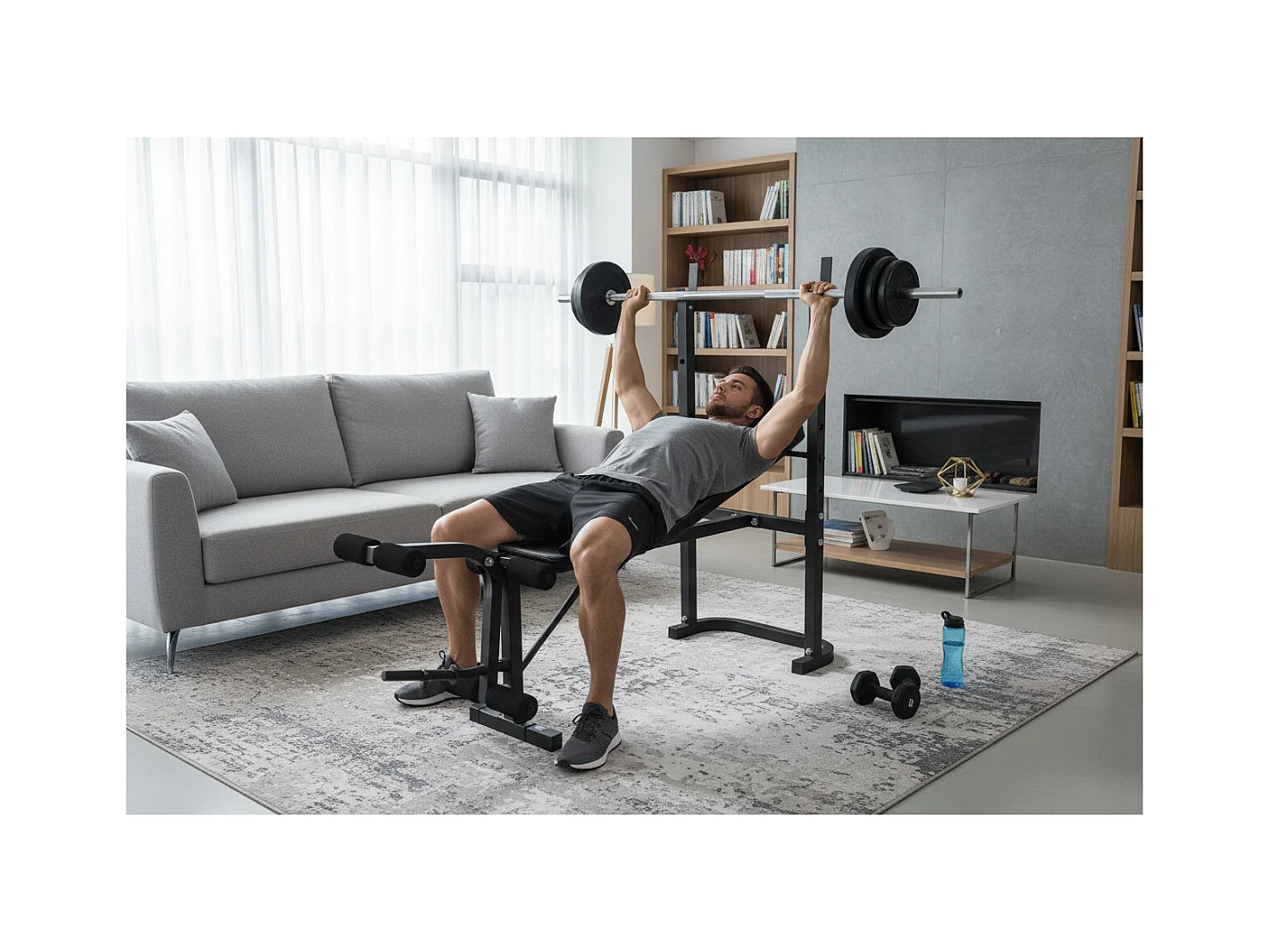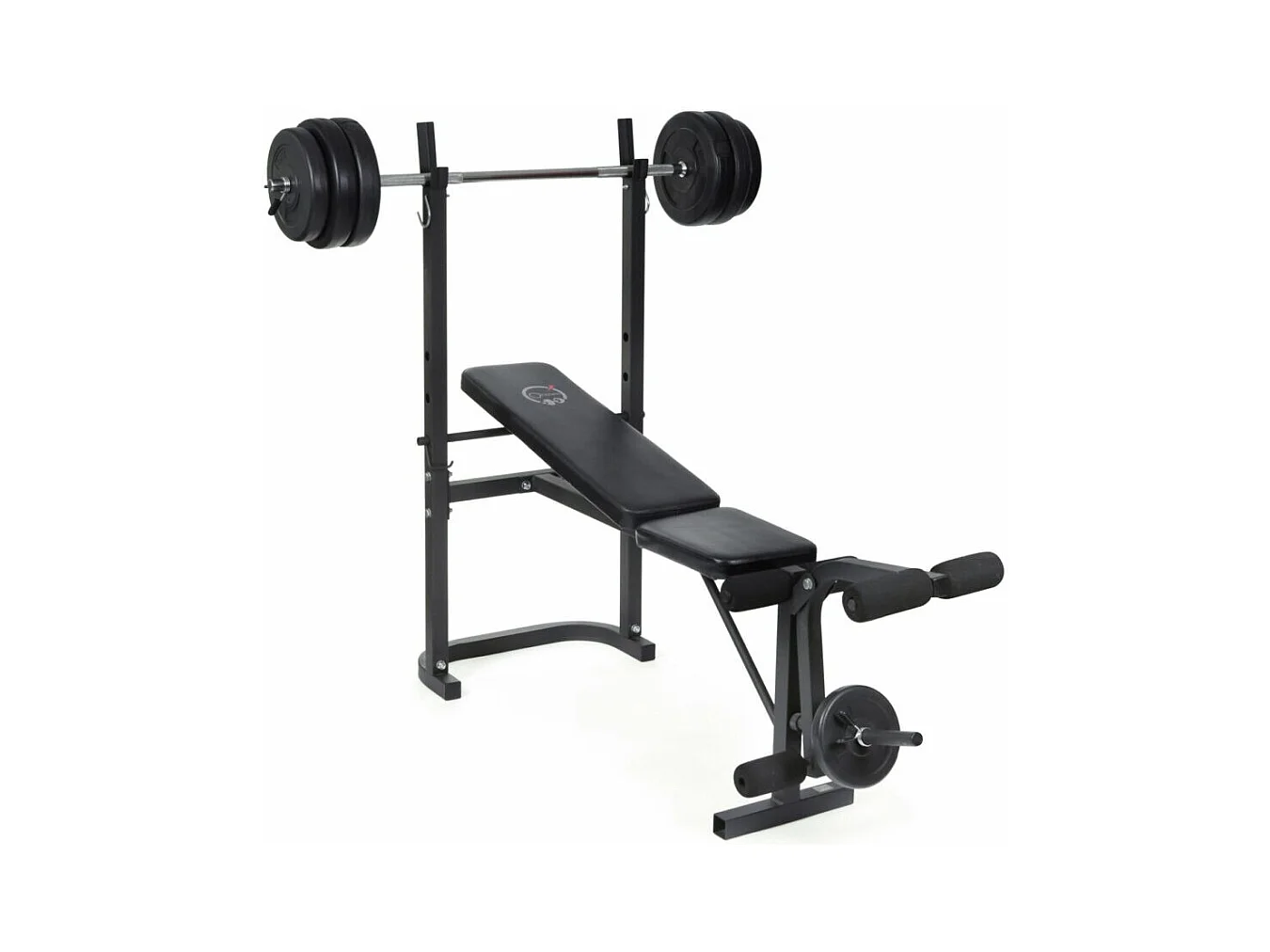 Banc de musculation avec poste jambe - Barre et 20 Kg de poids inclus - O'Fitness - Maison/appartement