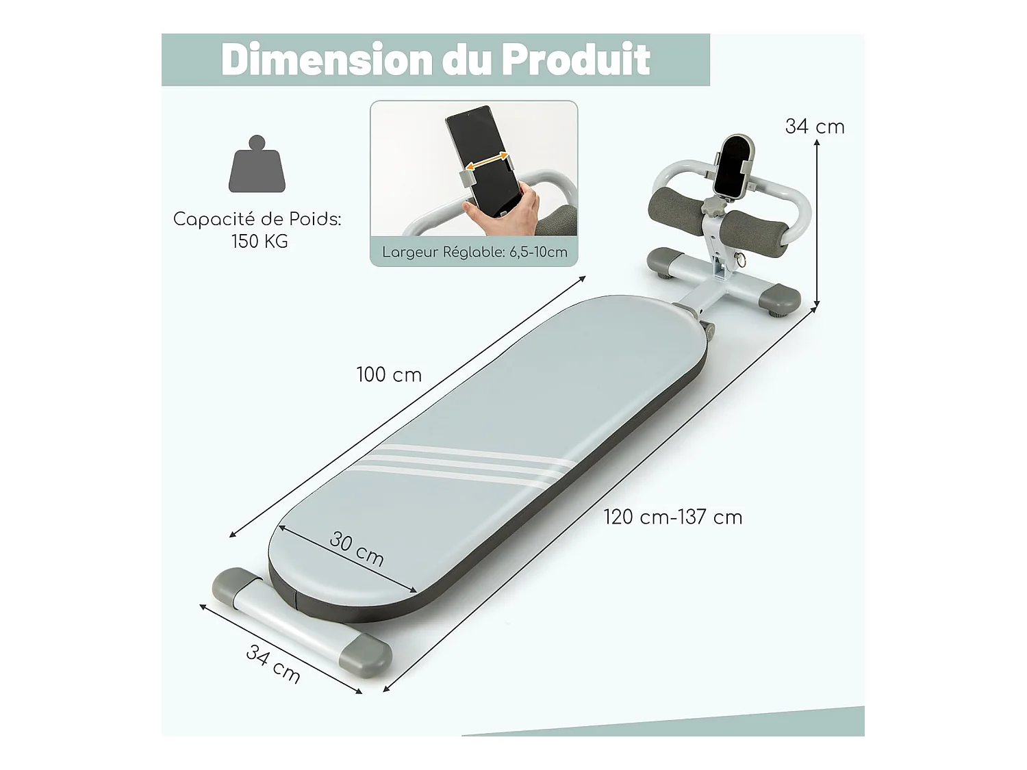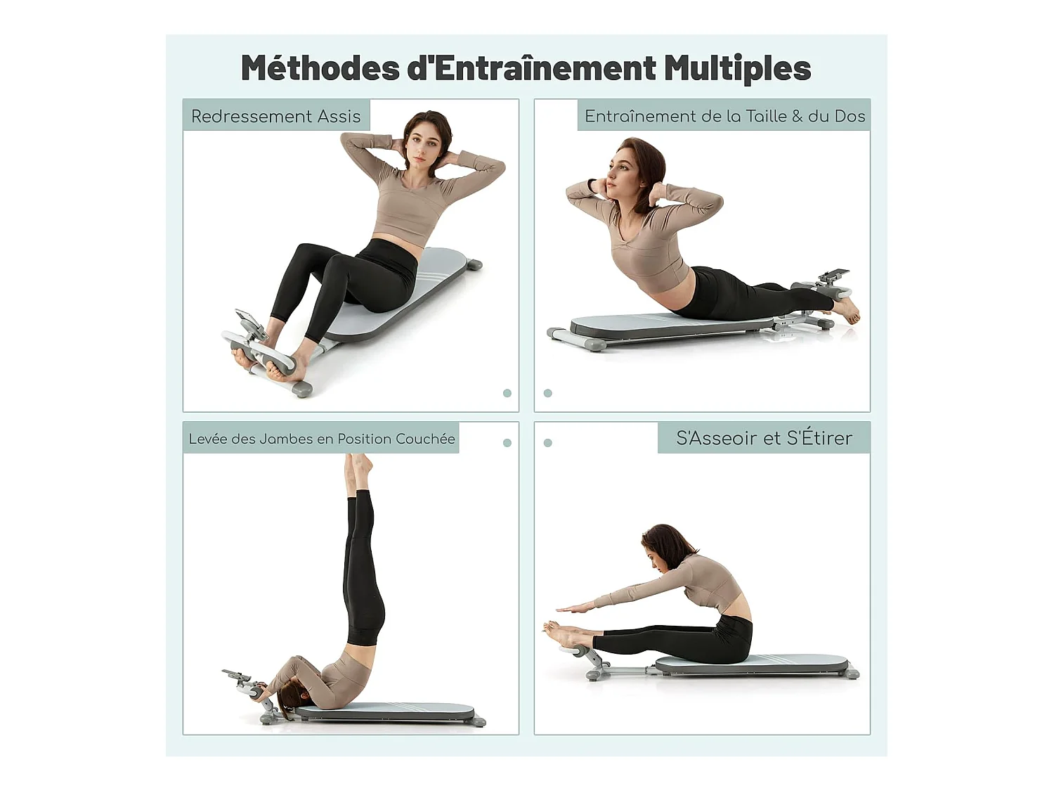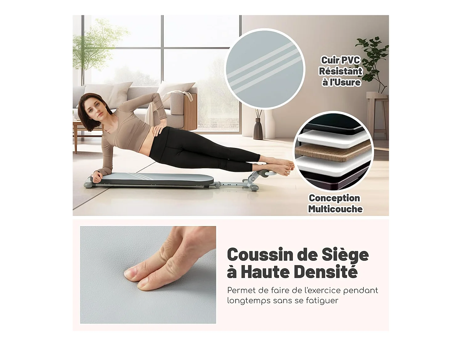 Banc de Musculation Multifonction avec 3 Angles et Longueur Réglable, Banc de Redressement Assis Pliable Charge 150KG, Plateforme d'Entraînement (Bleu)
