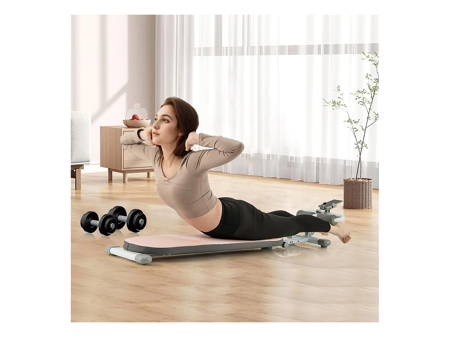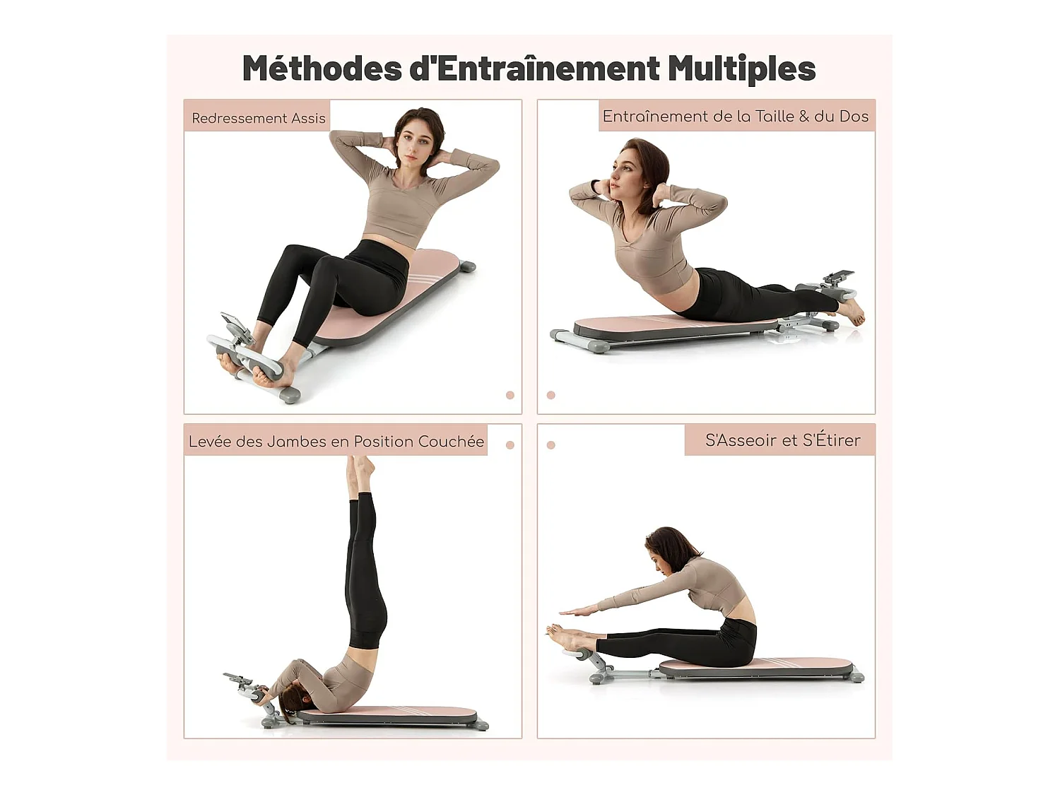 Planche de Pilates multifonction pliable MERACH, Bandes de résistance, entraînement Pilates et renforcement du tronc, rose