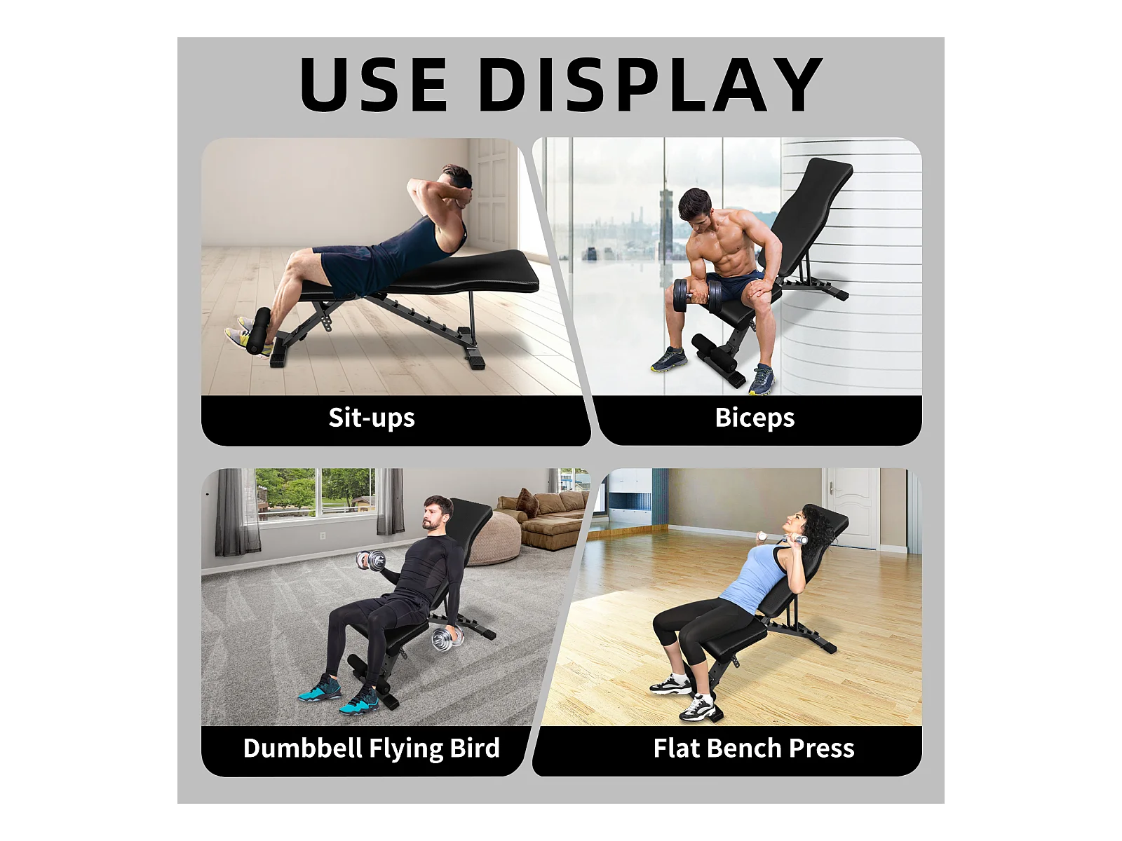 Banc de musculation pliable pour entraînement complet, réglable en inclinaison, acier, noir (82x24.5x34.5 cm)