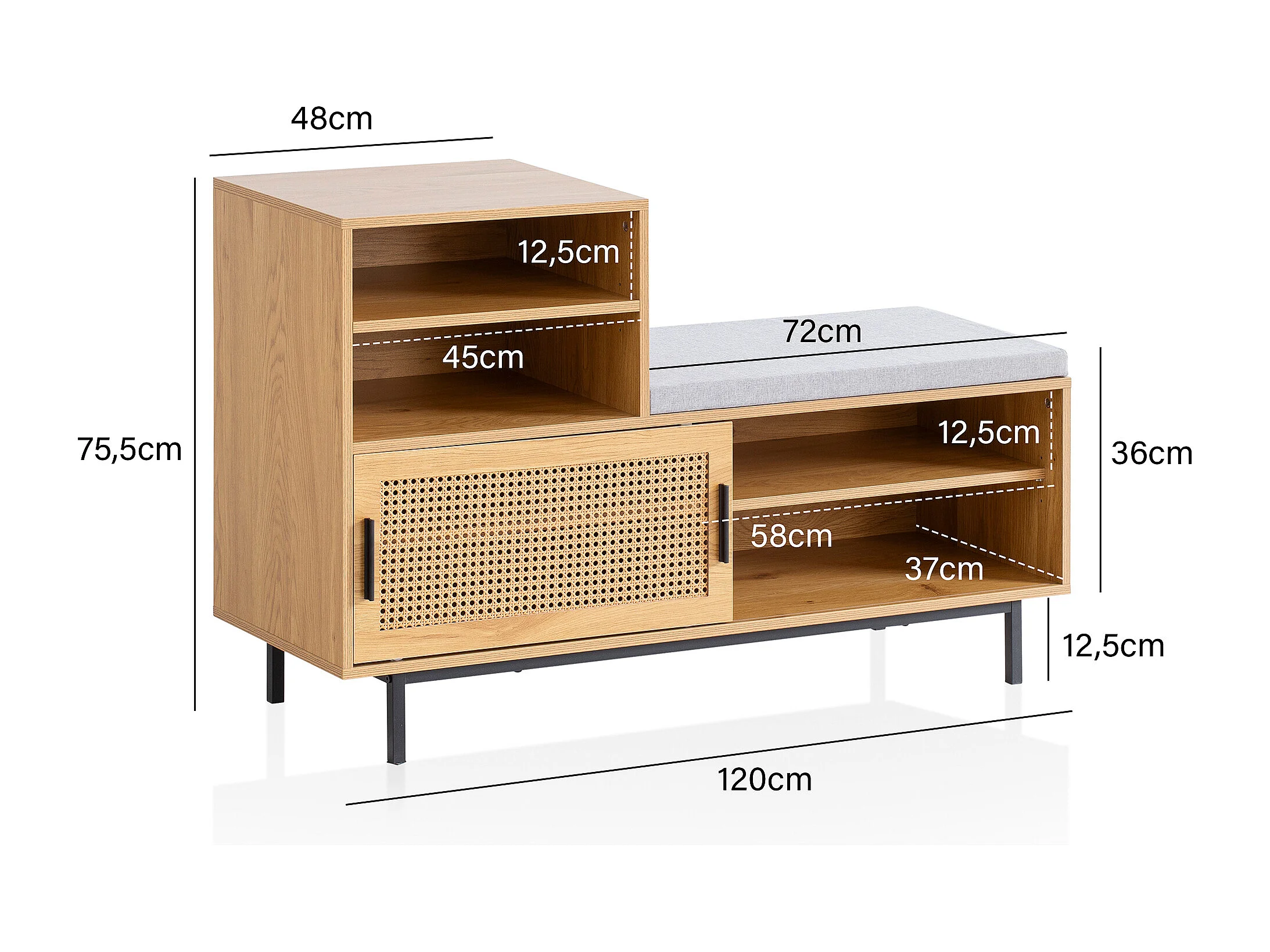 Banc de Rangement à Chaussure Entrée 120 cm Étagère a Chaussures Chêne